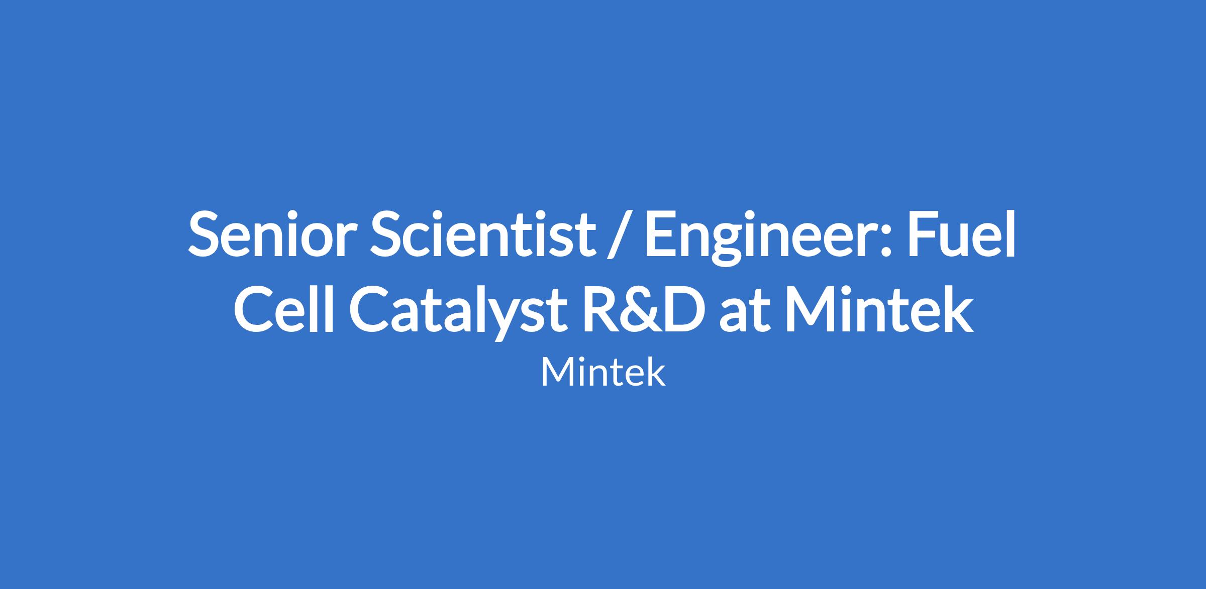 Senior Scientist / Engineer: Fuel Cell Catalyst R&D at Mintek