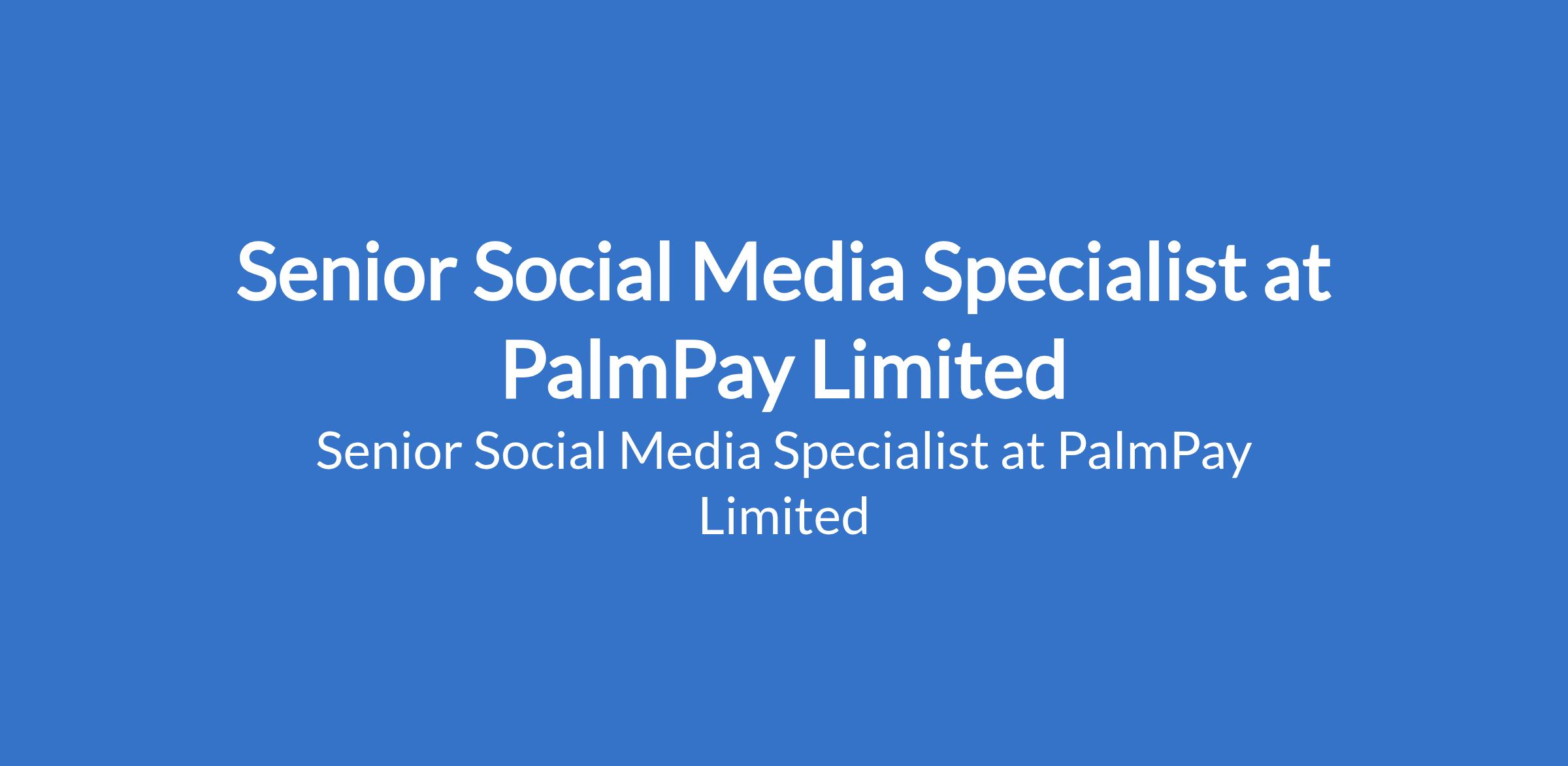Senior Social Media Specialist at PalmPay Limited