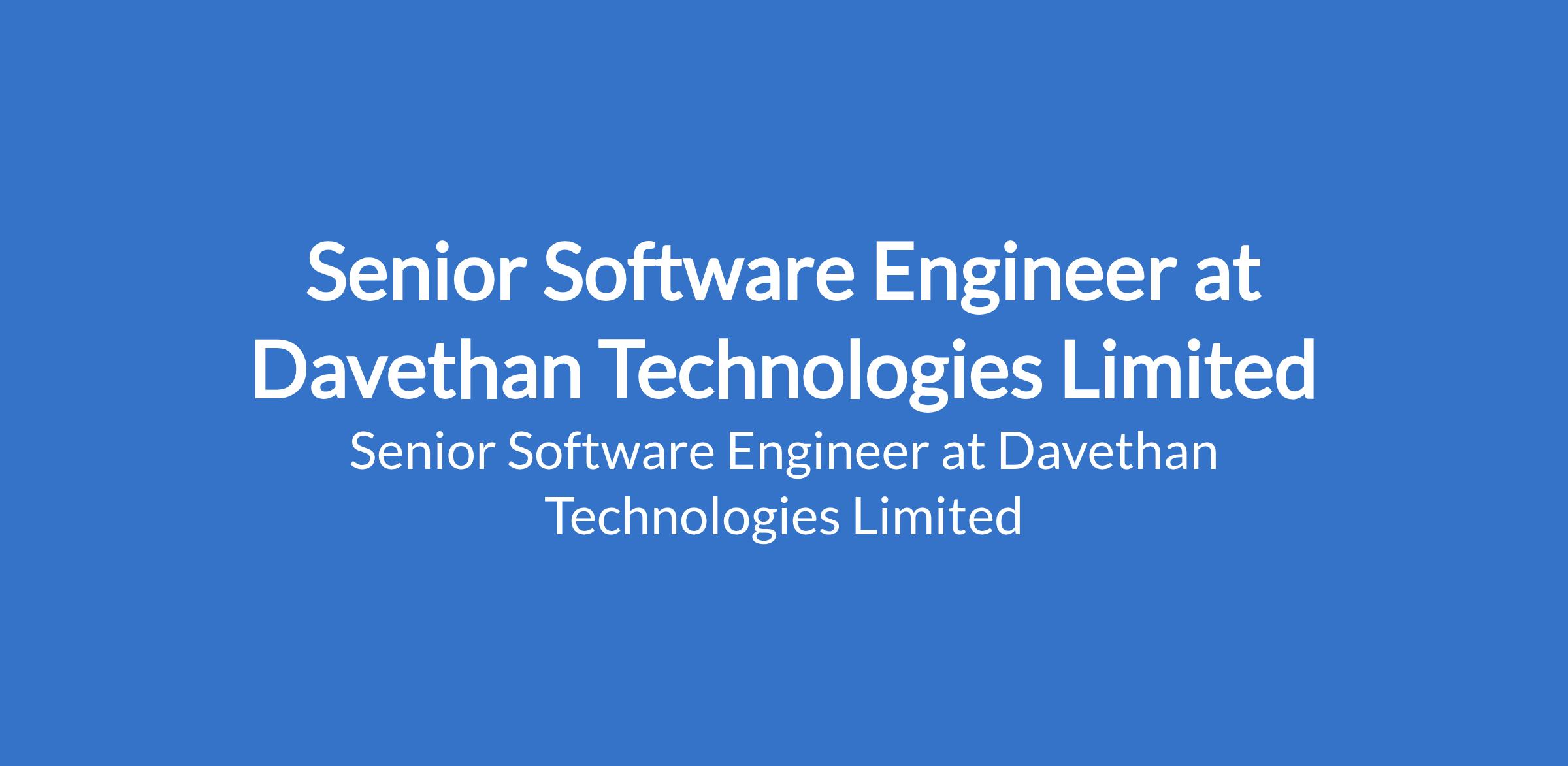 Davethan Technologies Limited is recruiting to fill the position of: Senior Software Engineer. The position is located in Abuja (FCT) / Lagos State. Interested candidates should possess a MBA or Masters Degree in Computer Science, Engineering, or related field with 10+ yearsof progressive experience in software engineering and technology leadership.