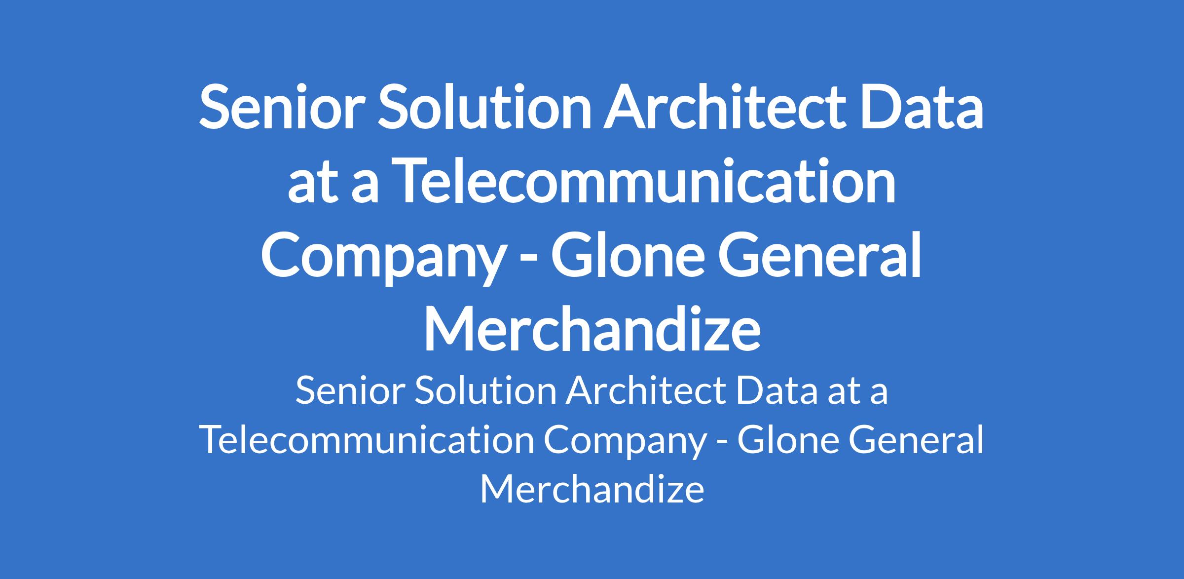 Glone General Merchandize - Our client, a telecommunications company is recruiting to fill the position of: Senior Solution Architect Data. The position is located in Lagos State. Interested candidates should possess a Bachelors Degree in Computer Science, Engineering, or related fields with 7 - 10 years experience in network and data solution architecture.