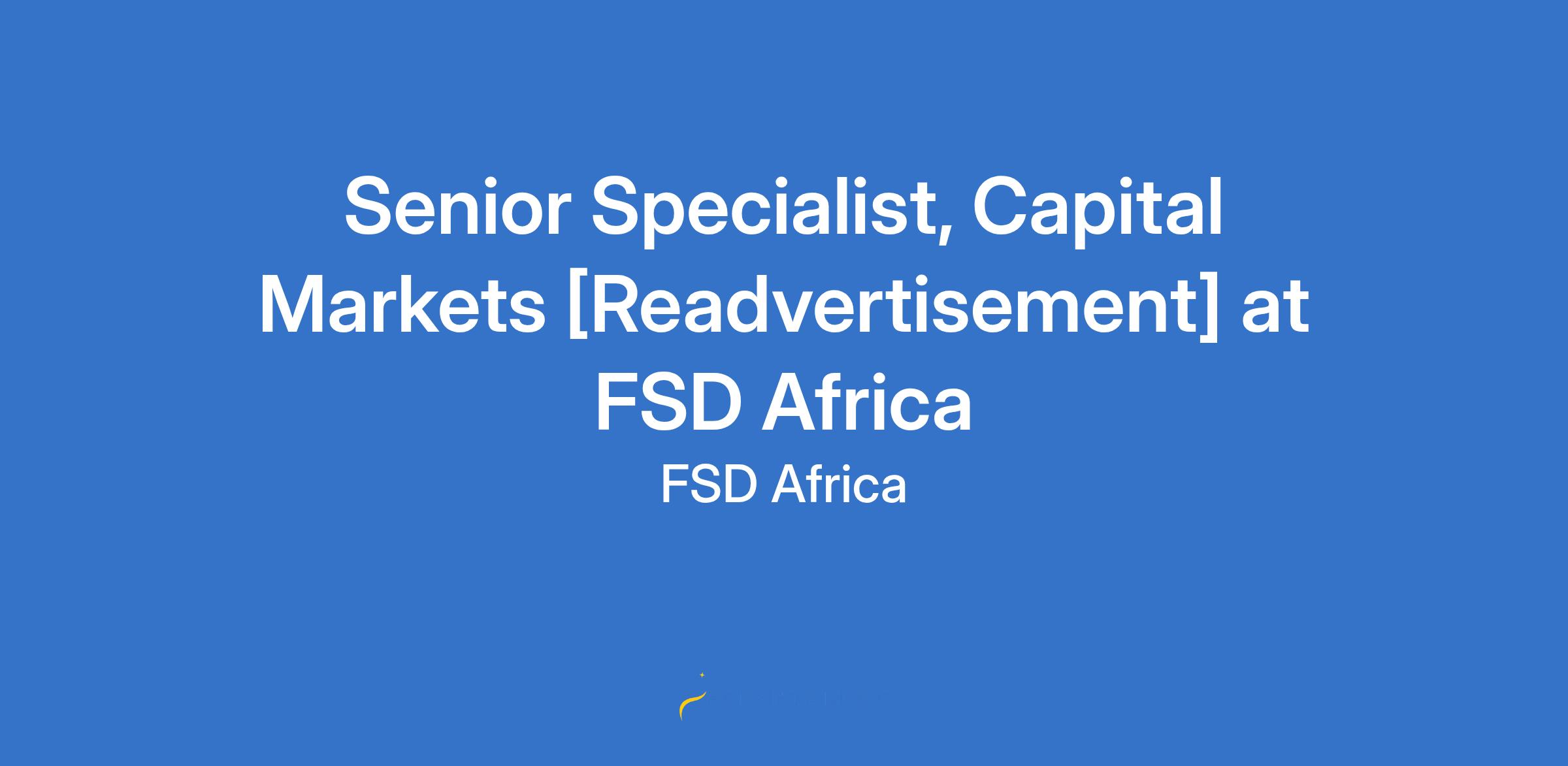 Senior Specialist, Capital Markets [Readvertisement] at FSD Africa