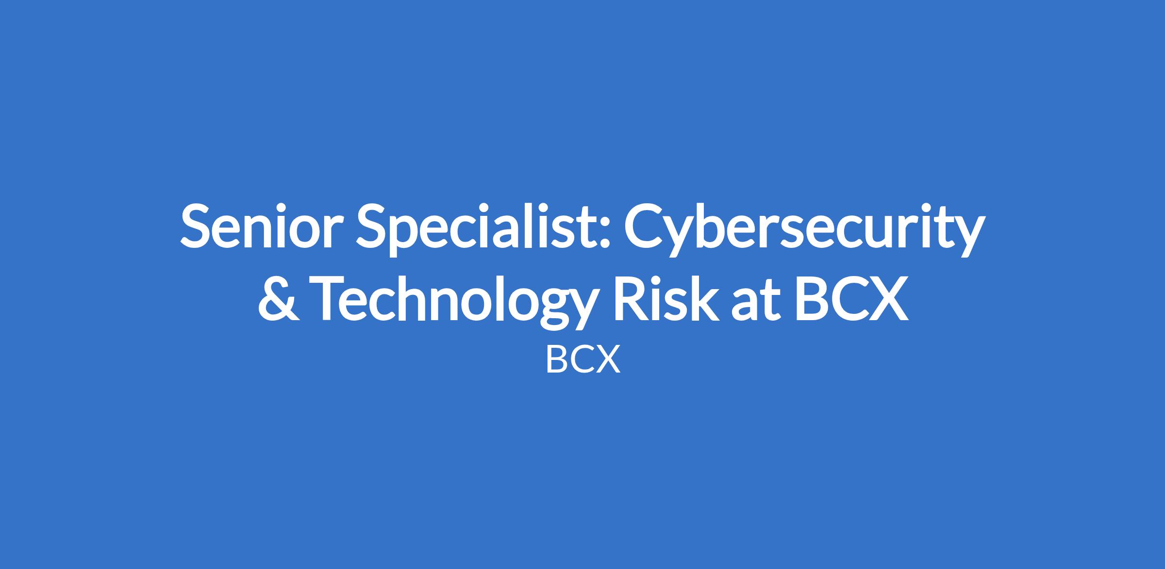 Senior Specialist: Cybersecurity & Technology Risk at BCX