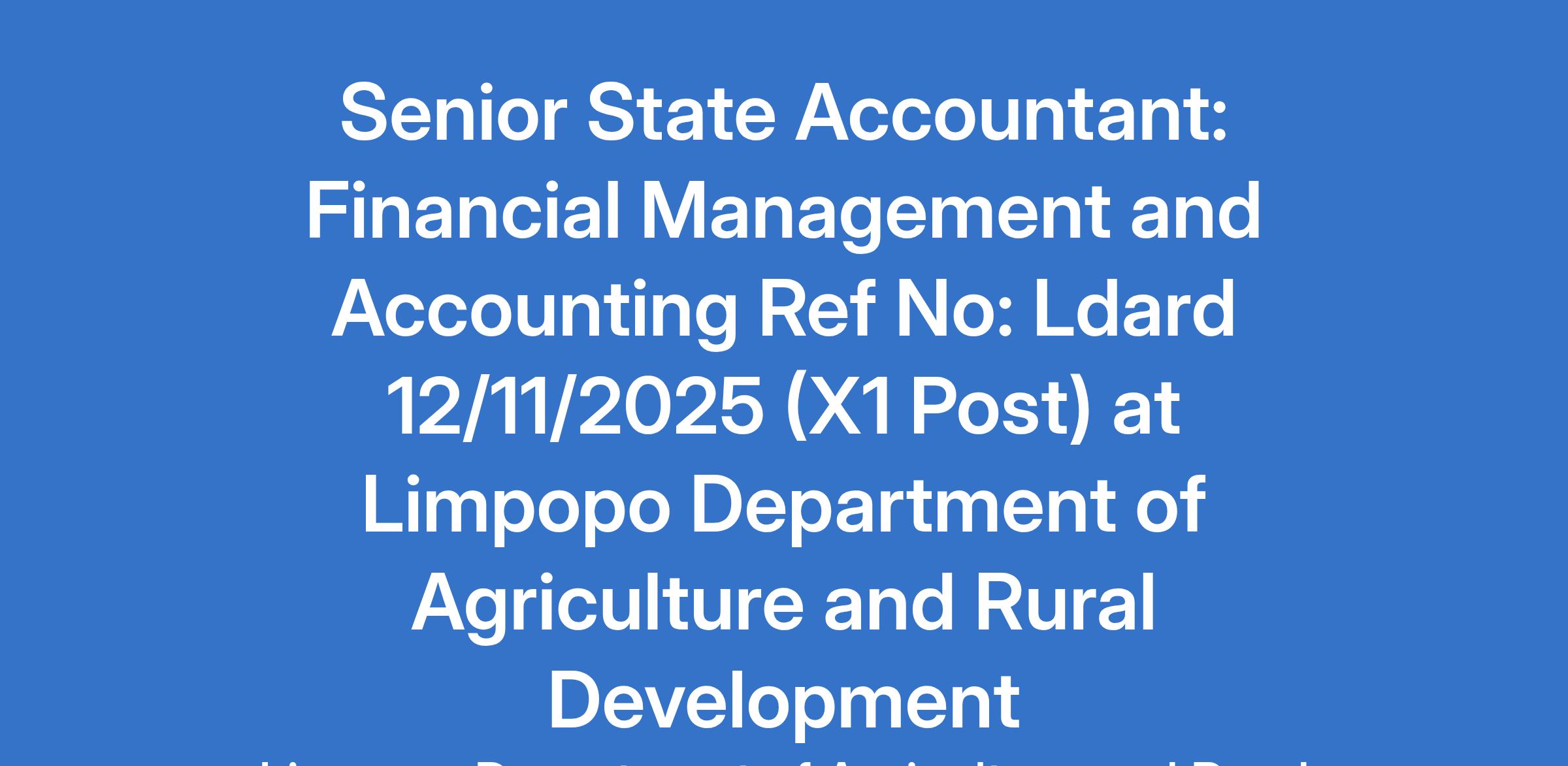Grade 12 plus an appropriate NQF level 6, National Diploma/ Degree in Financial Management /Financial Accounting, Public Finance Management or relevant equivalent qualification as recognized by SAQA. LOGIS and PERSAL certificates/ Results.
