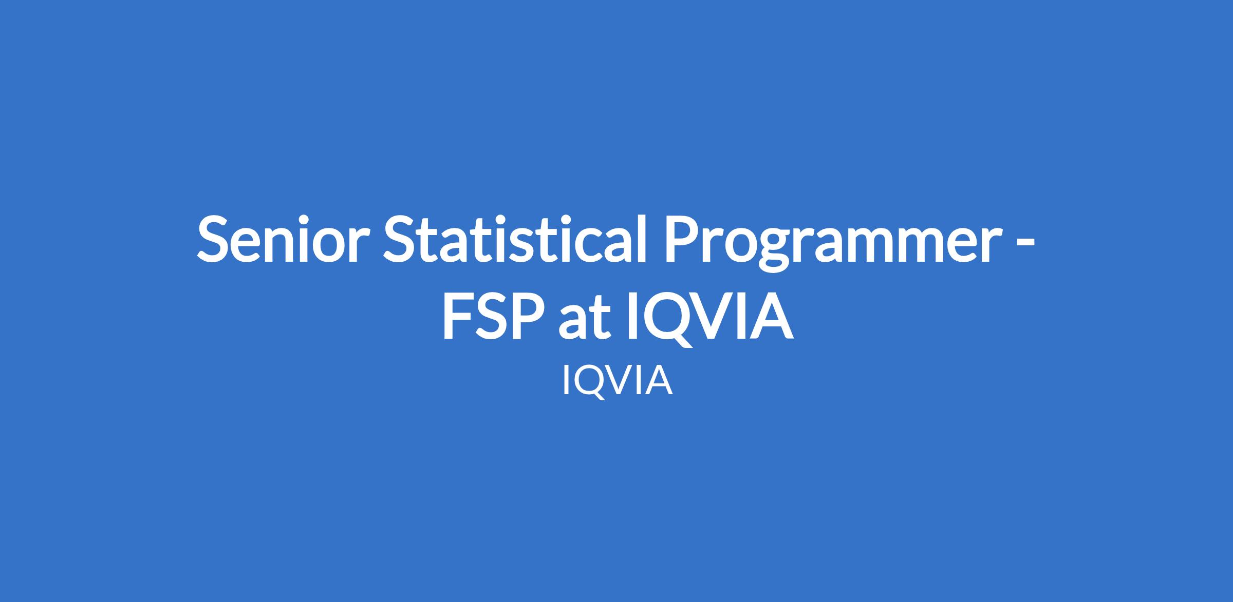 Senior Statistical Programmer - FSP at IQVIA