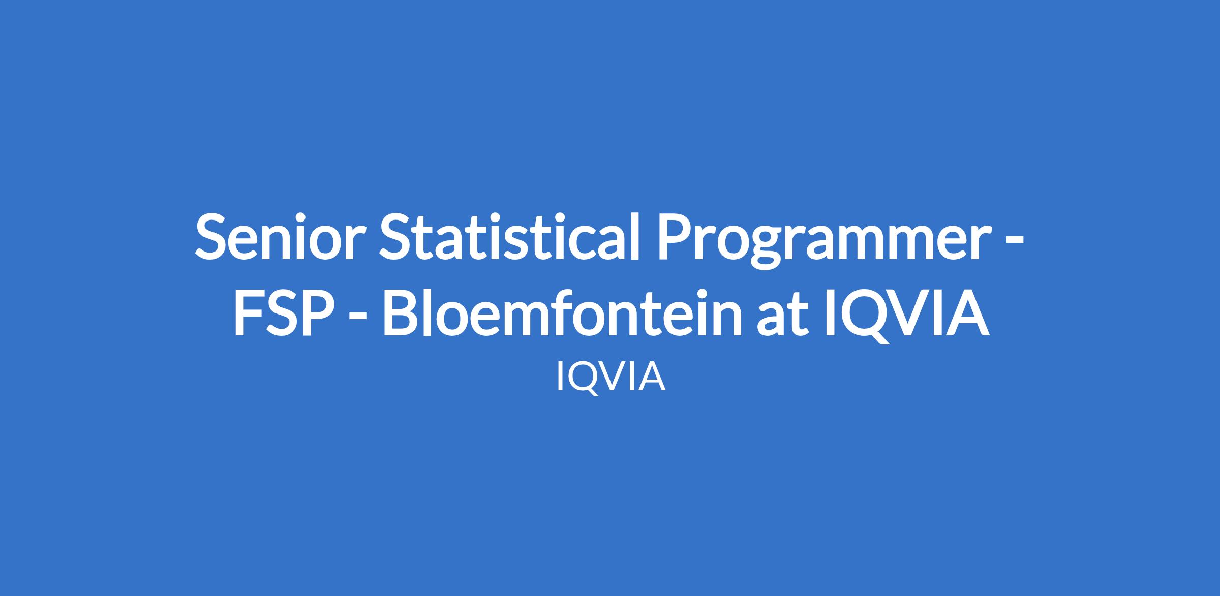 Senior Statistical Programmer - FSP - Bloemfontein at IQVIA
