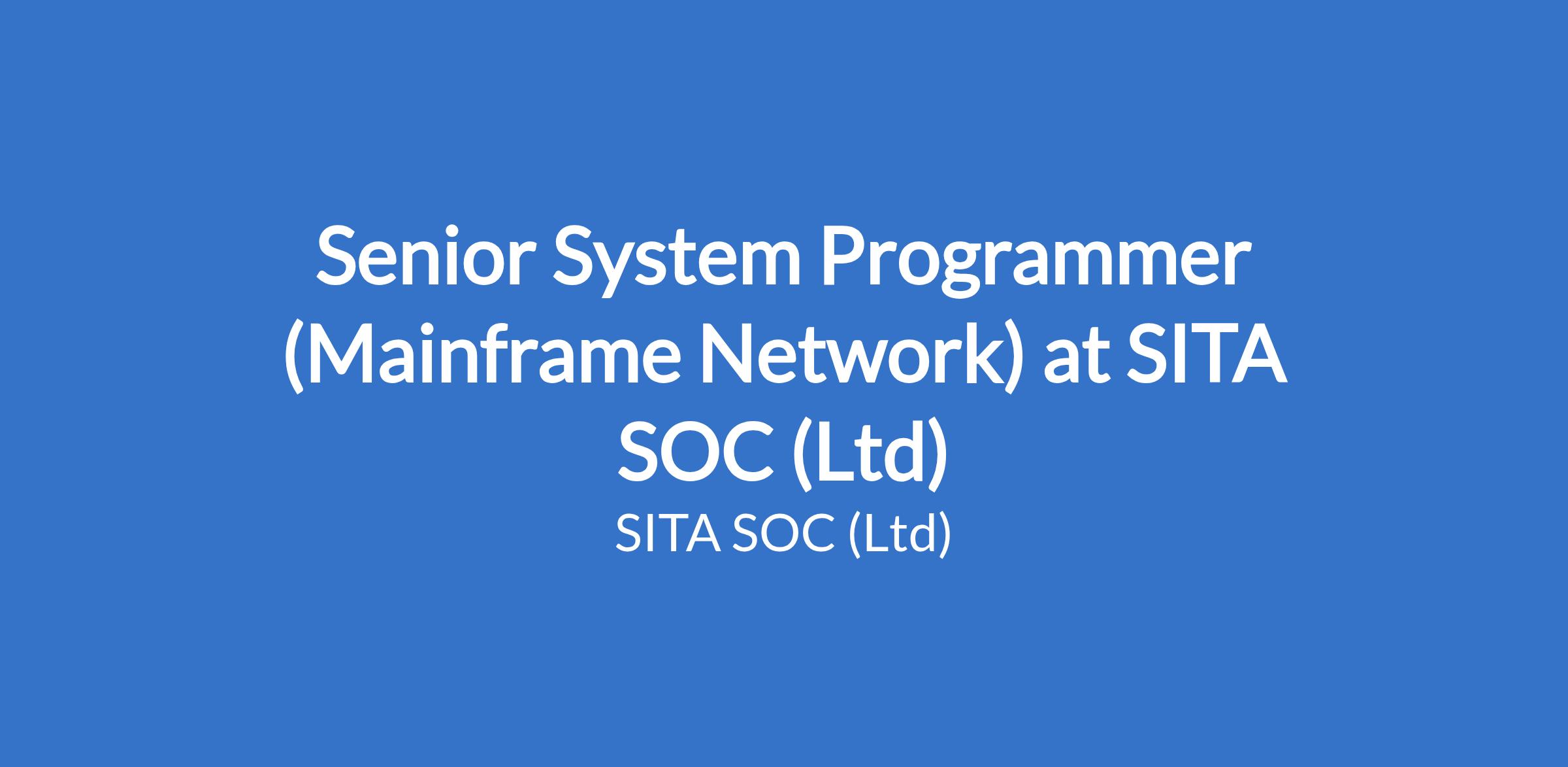 Senior System Programmer (Mainframe Network) at SITA SOC (Ltd)