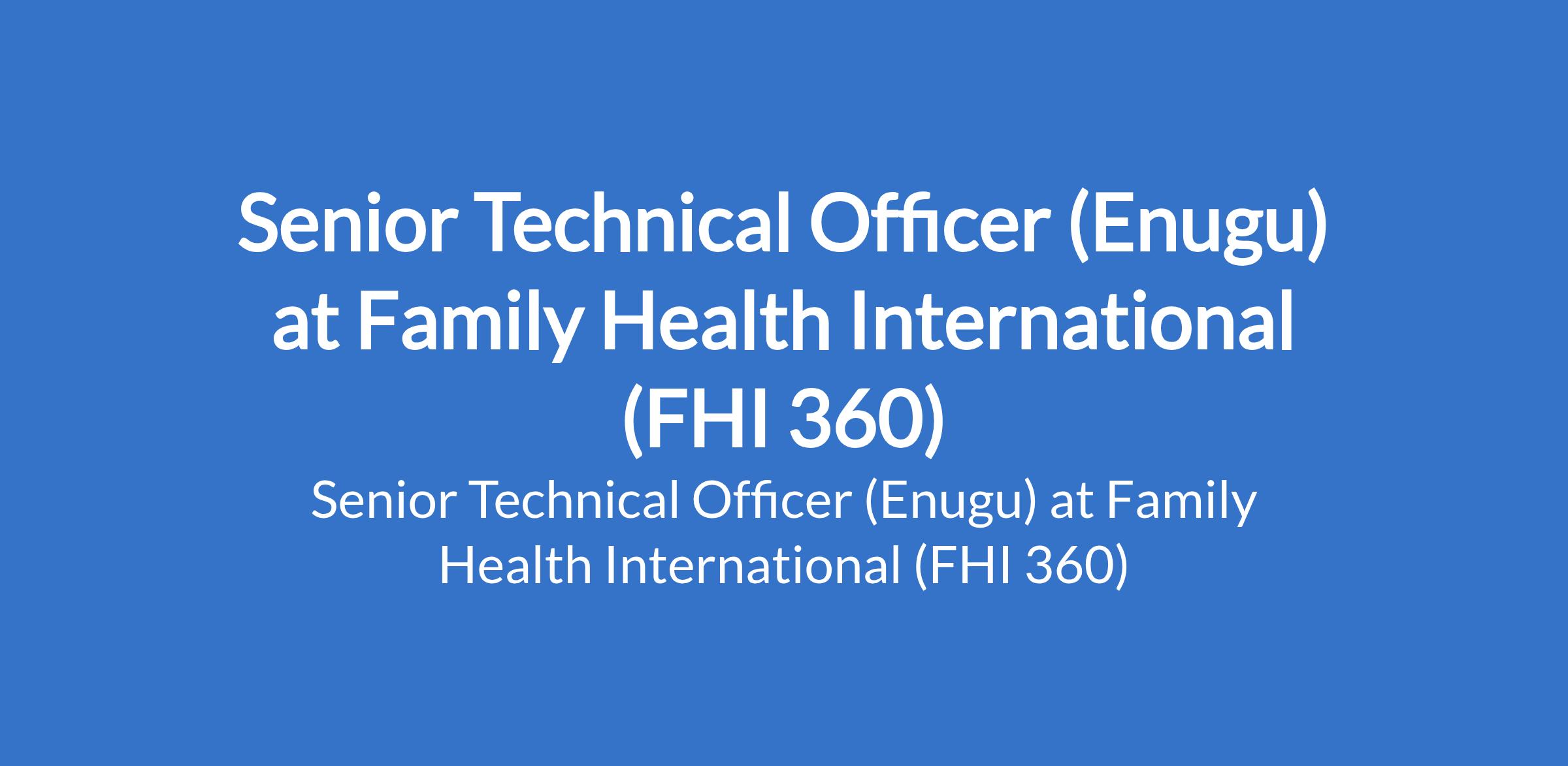 Family Health International (FHI 360) is recruiting to fill the position of: Senior Technical Officer. The position is located in Enugu State. Interested candidates should possess a Masters Degree or its international equivalent in Public Health, Epidemiology, Microbiology, Laboratory Science, Health Systems, or related fields with 6+ years of relevant experience in public health, laboratory systems strengthening, surveillance, or outbreak preparedness and response.