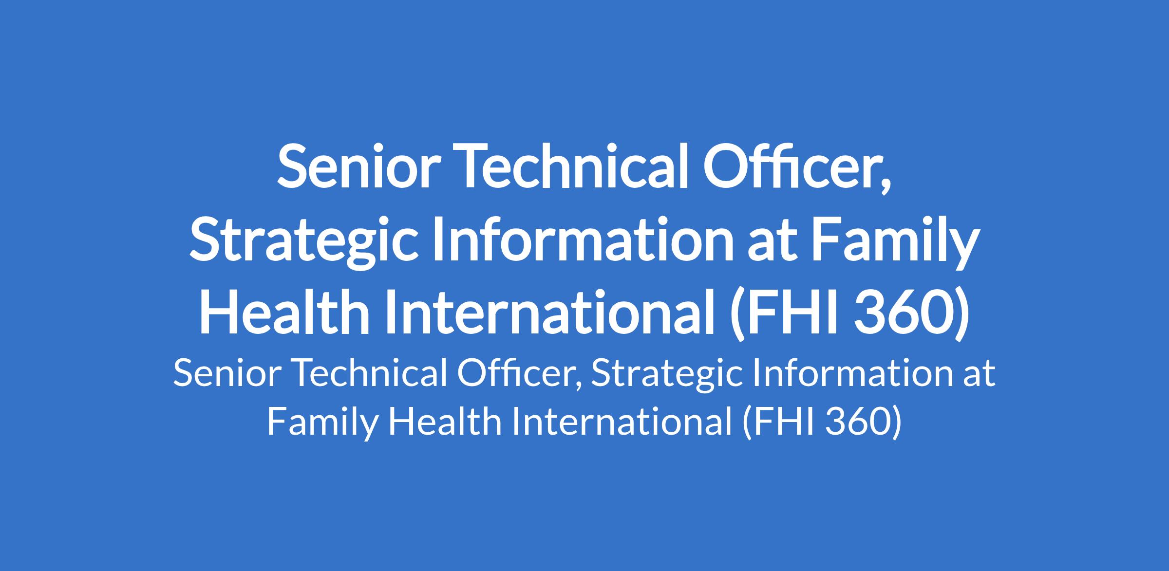 Family Health International (FHI 360) is recruiting to fill the position of: Senior Technical Officer, Strategic Information. The position is located in Bauchi State. Interested candidates should possess a MSc / MA in Medical Sciences, Public Health or related discipline with 6+ years of relevant experience in Strategic Information / Monitoring & Evaluation systems with a minimum of 3 years of progressive experience in Strategic Information or Monitoring & Evaluation within health, behavioural sciences or related fields, preferably within the U.S. Department of State or other donor-funded public health programs.