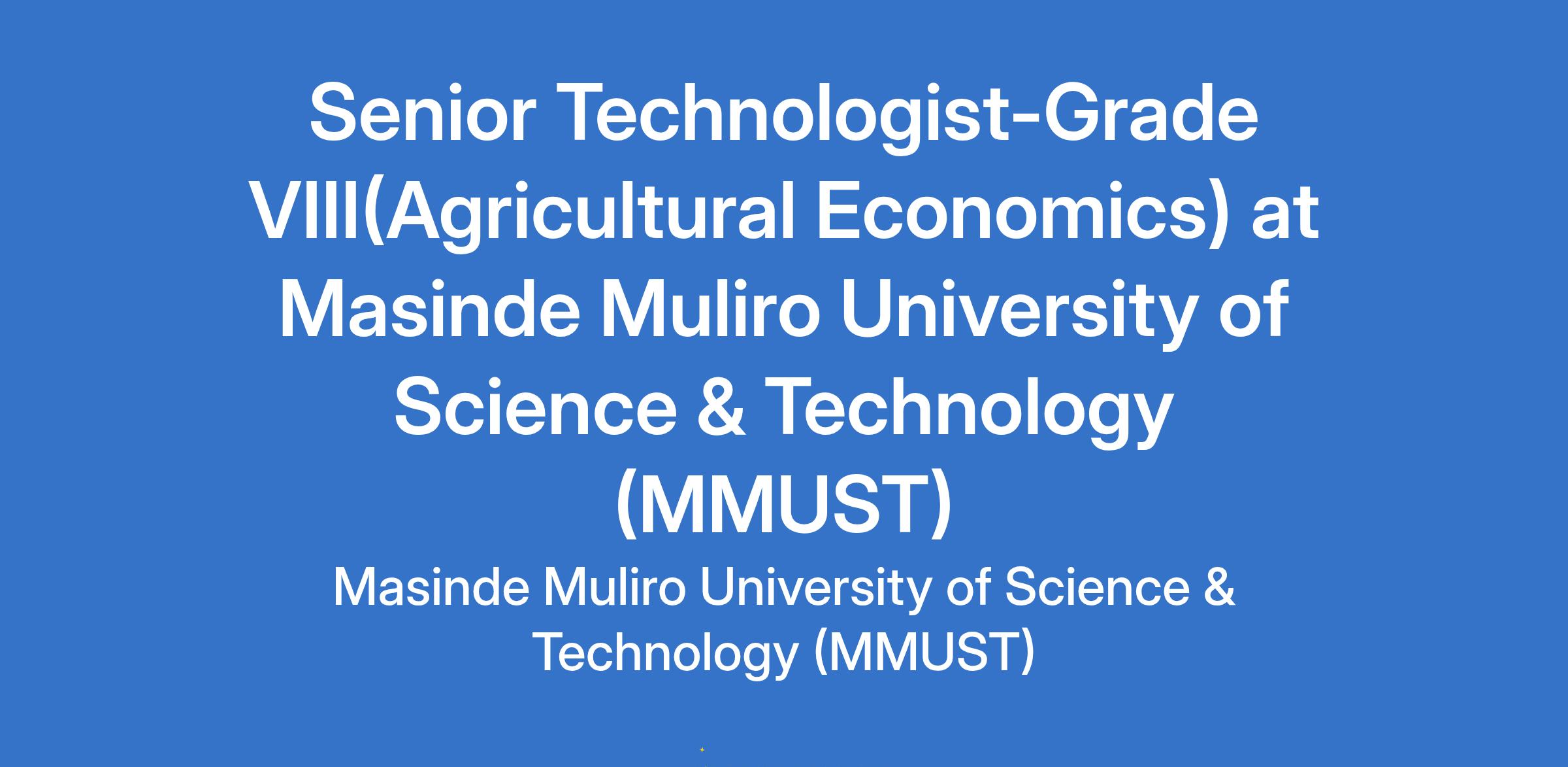 Senior Technologist-Grade VIII(Agricultural Economics) at Masinde Muliro University of Science & Technology (MMUST)