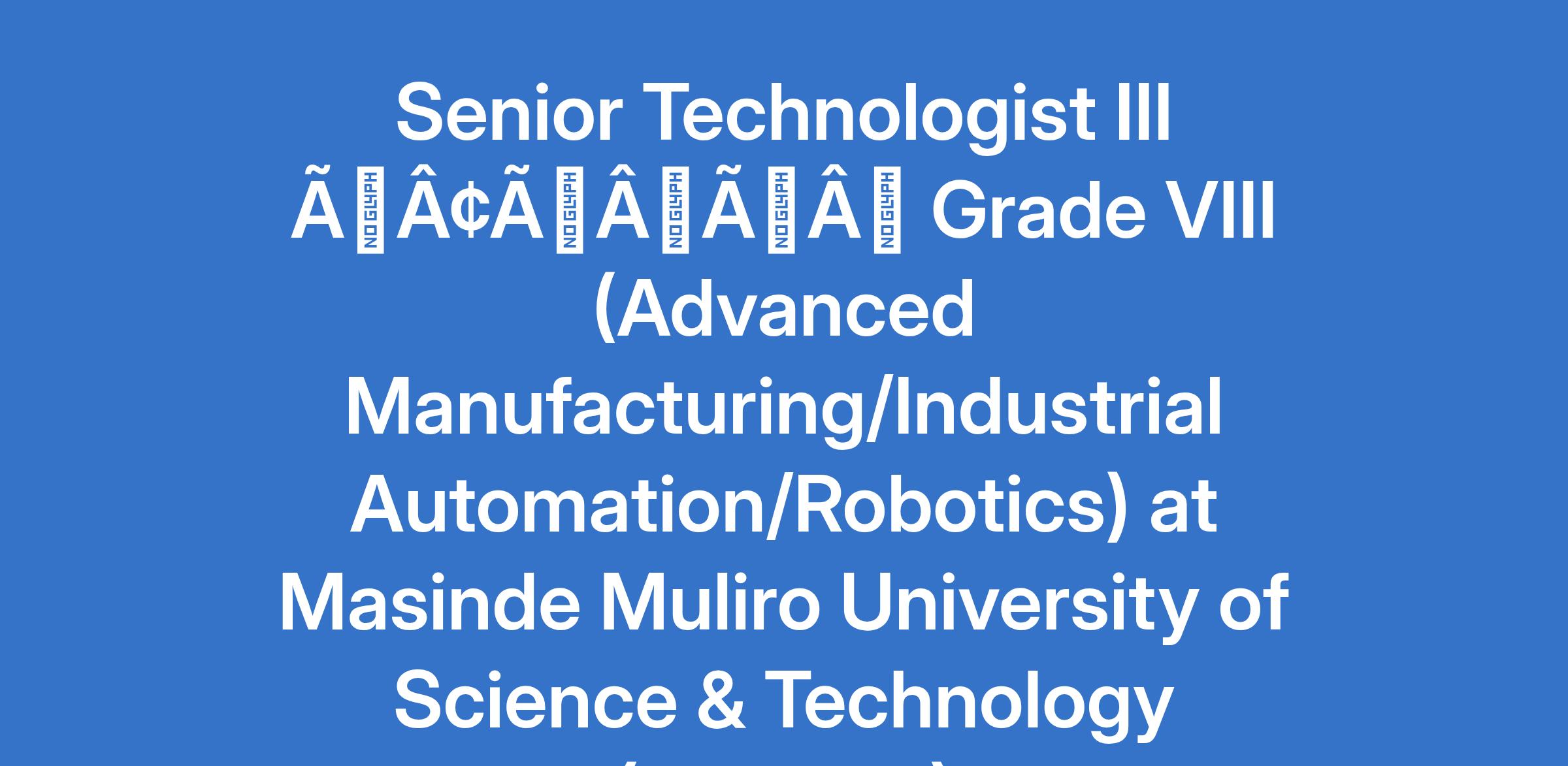 Senior Technologist III – Grade VIII (Advanced Manufacturing/Industrial Automation/Robotics) at Masinde Muliro University of Science & Technology (MMUST)