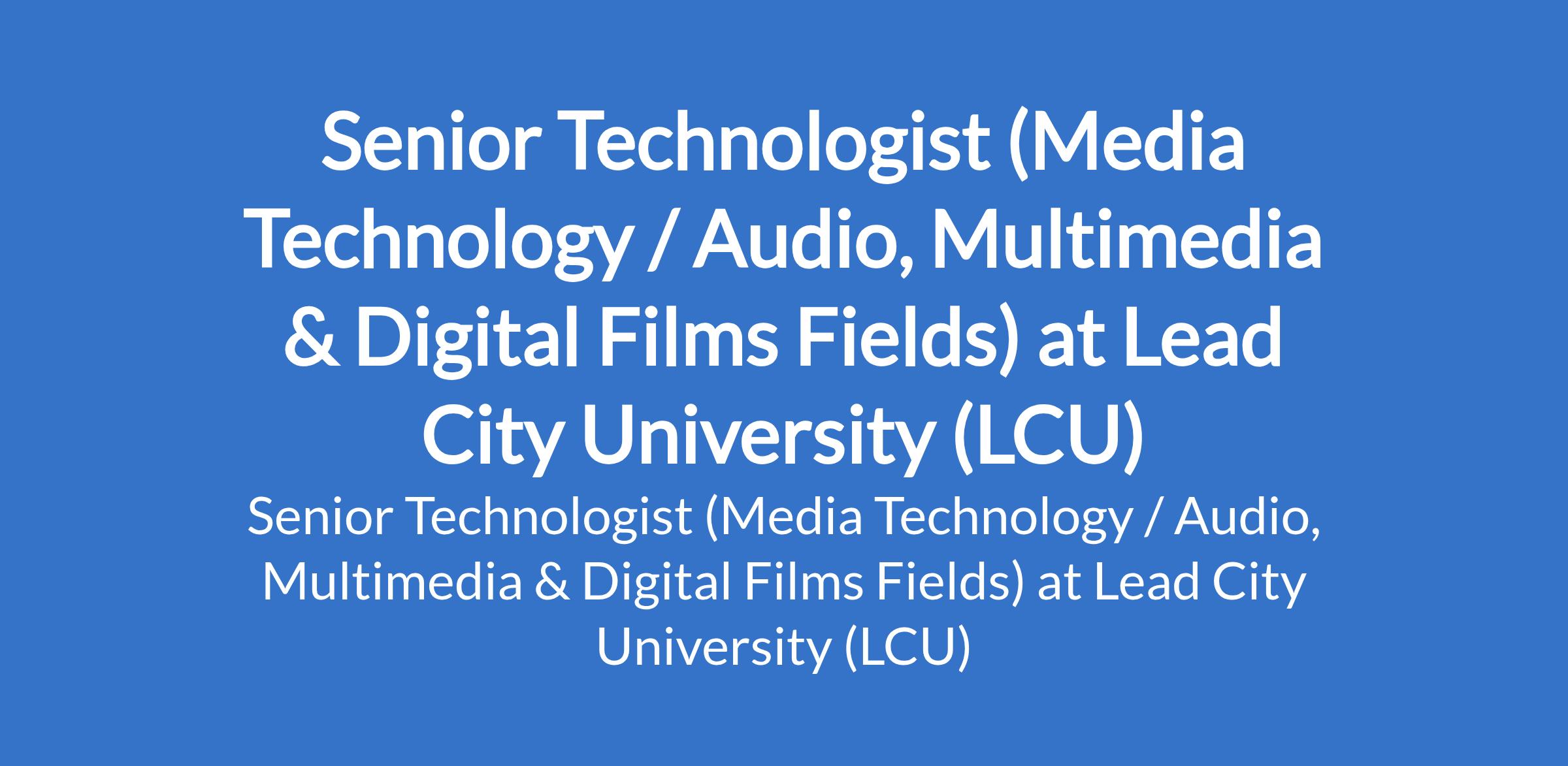 Lead City University (LCU) invites applications from suitable candidates to fill the position of: Senior Technologist (Media Technology / Audio, Multimedia & Digital Films Fields). The position is located in Ibadan, Oyo State. Interested candidates should possess a good First Degree, not below Second Class Lower Division or Higher National Diploma (HND) from a reputable University/Institution..
