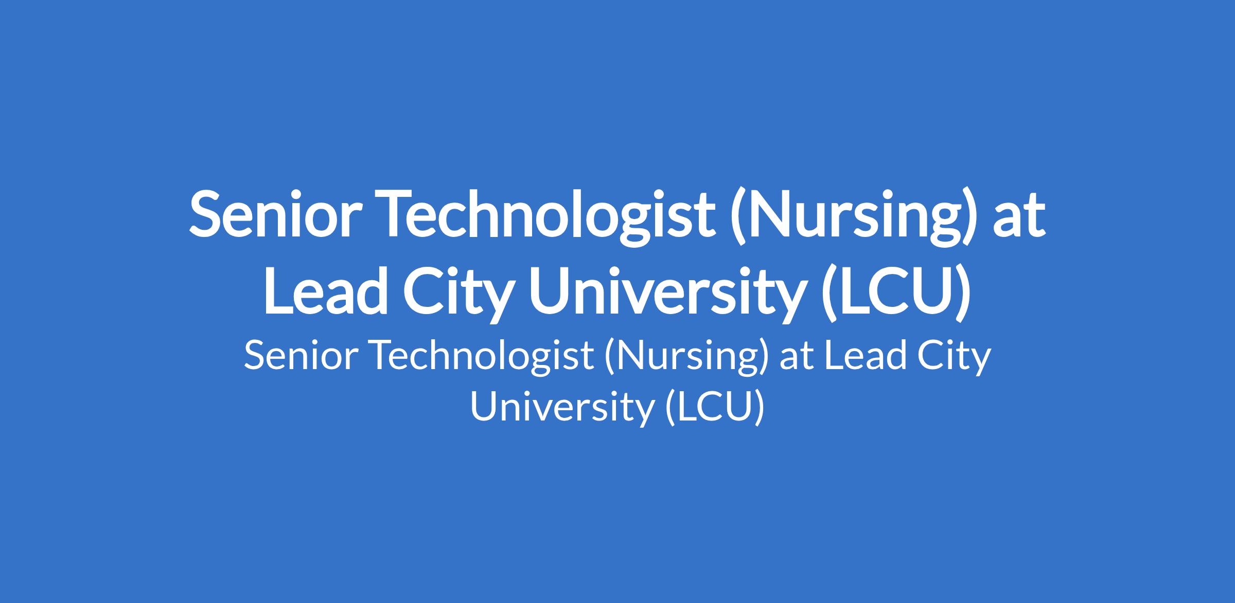 Lead City University (LCU) invites applications from suitable candidates to fill the position of: Senior Technologist (Nursing). The position is located in Ibadan, Oyo State. Interested candidates should possess a good First Degree, not below second class lower division or Higher National Diploma (HND) from a reputable University/Institution and must possess a current practice license from the relevant Council/Regulatory Board.