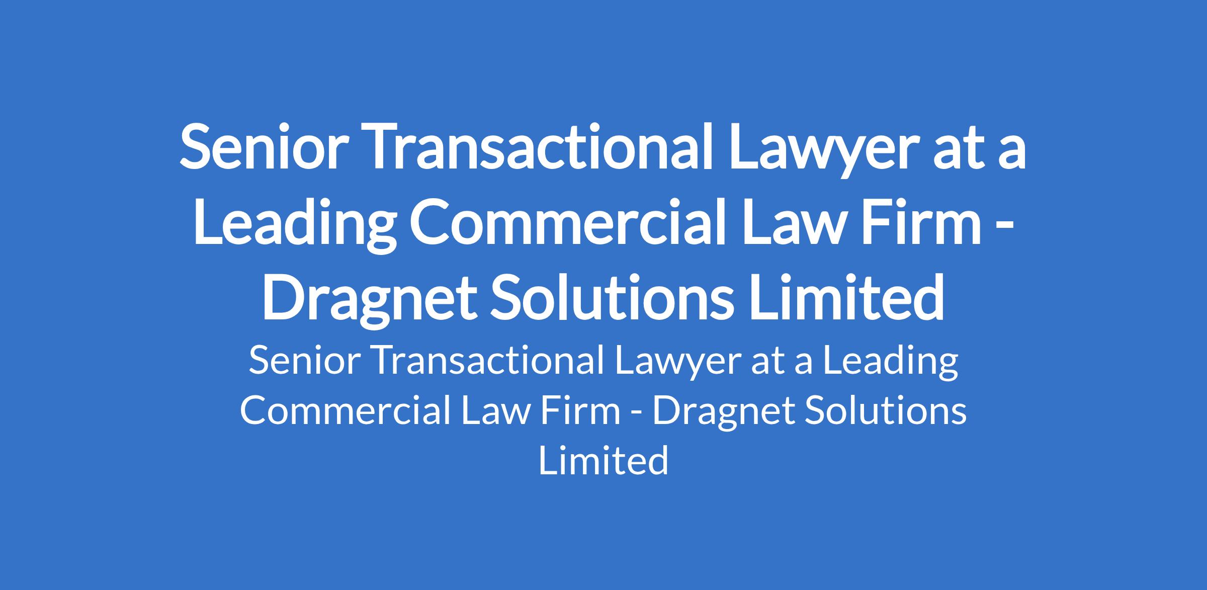 Dragnet Solutions Limited - Our client, a leading commercial law firm is recruiting to fill the position of: Senior Transactional Lawyer. The position is located in Lagos State. The ideal candidate will have demonstrable experience advising on complex energy and financial transactions, including project finance, capital raising, joint ventures, and regulatory compliance. Interested candidates should possess relevant qualifications.