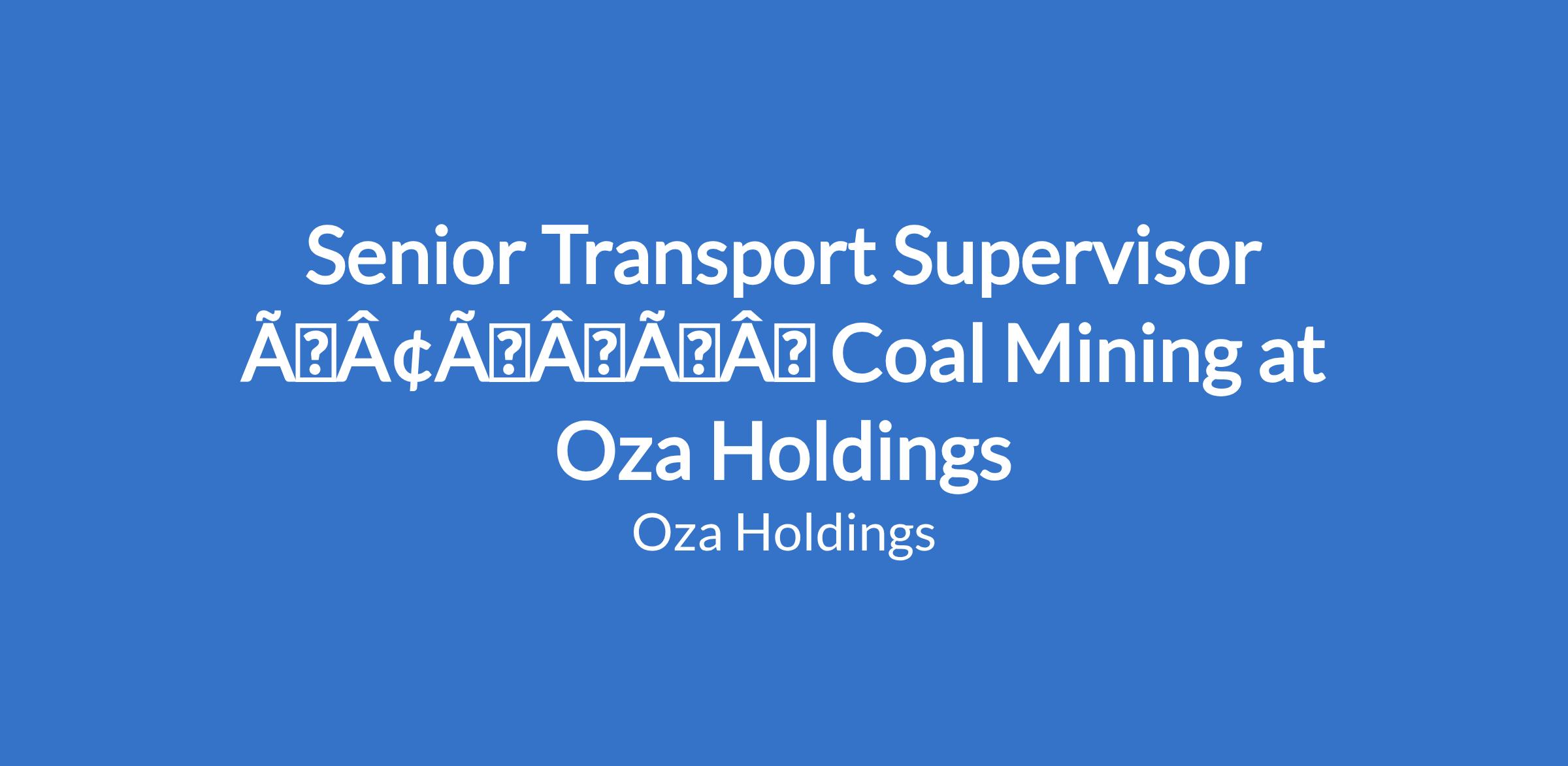 Senior Transport Supervisor âÃÂàCoal Mining at Oza Holdings