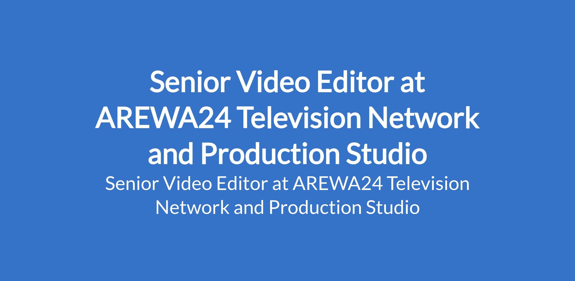 AREWA24 Television Network and Production Studio is recruiting to fill the position of: Senior Video Editor. The position is located in Kano State. Interested candidates should possess relevant qualifications with a minimum of 8 years of professional editing experience in film, television, or high-end digital productions.