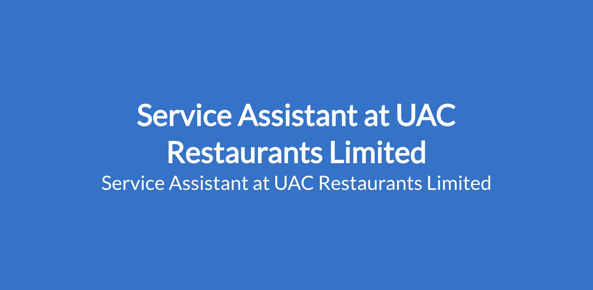 UAC Restaurants Limited is recruiting to fill the position of: Service Assistant. The position is located in Lagos State. Interested candidates should possess an SSCE or OND.