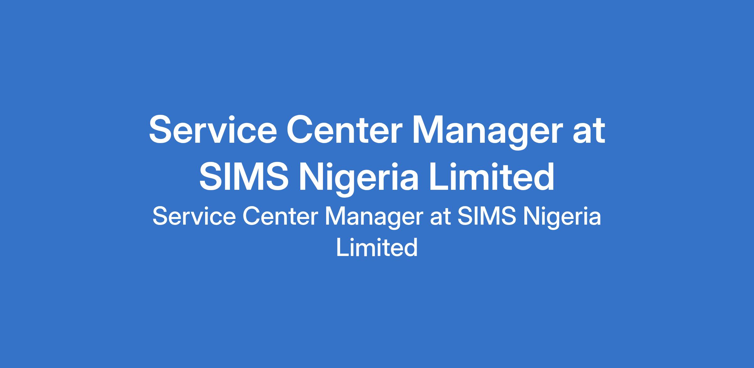 Service Center Manager at SIMS Nigeria Limited