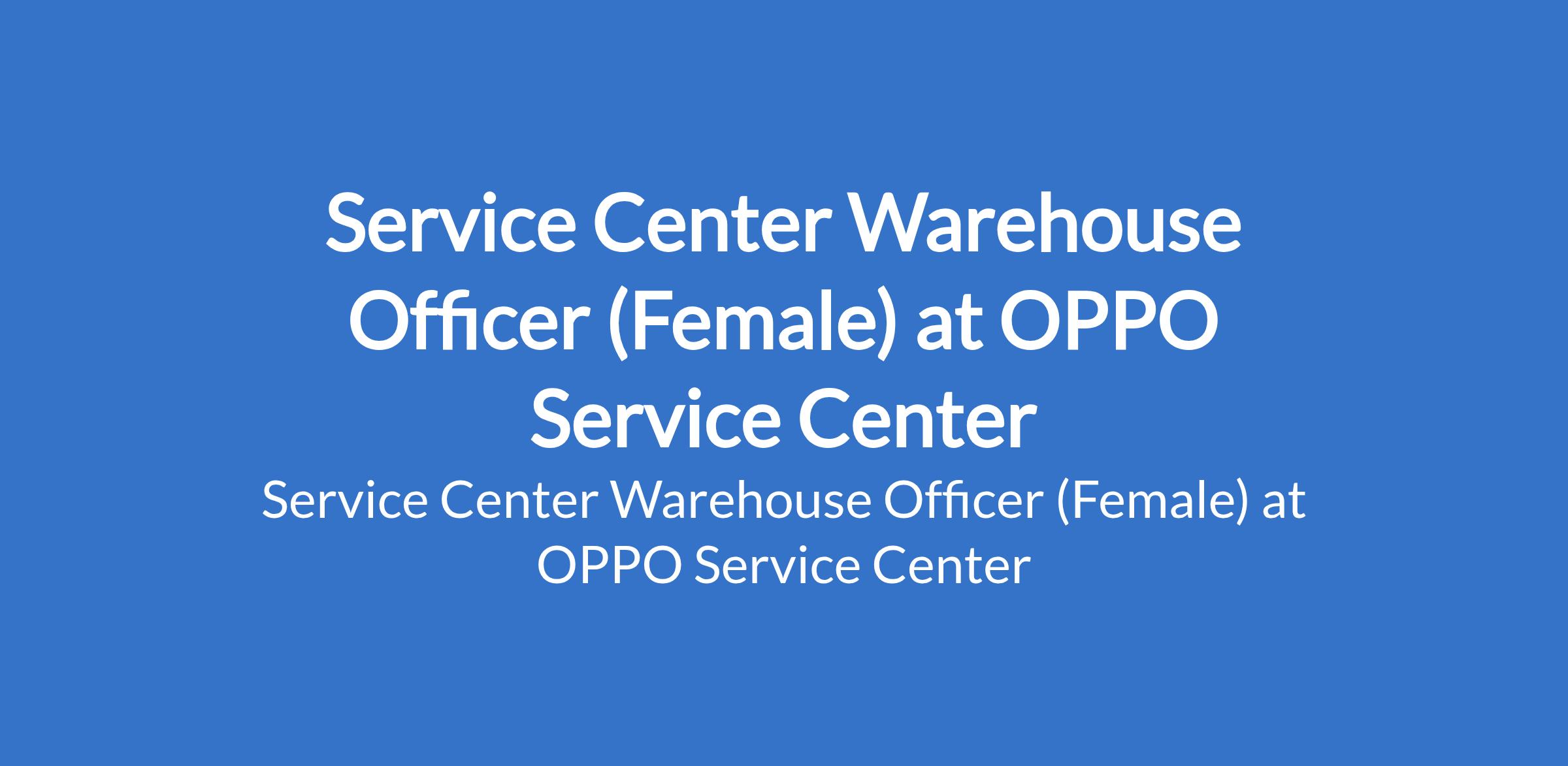 OPPO Service Center is recruiting to fill the position of: Service Center Warehouse Officer (Female). The position is located in Lagos State. alary: N50,000 - N70,000 monthly. Interested candidates should possess minimum of a High School Diploma with 1 year experience in stock or warehouse management.