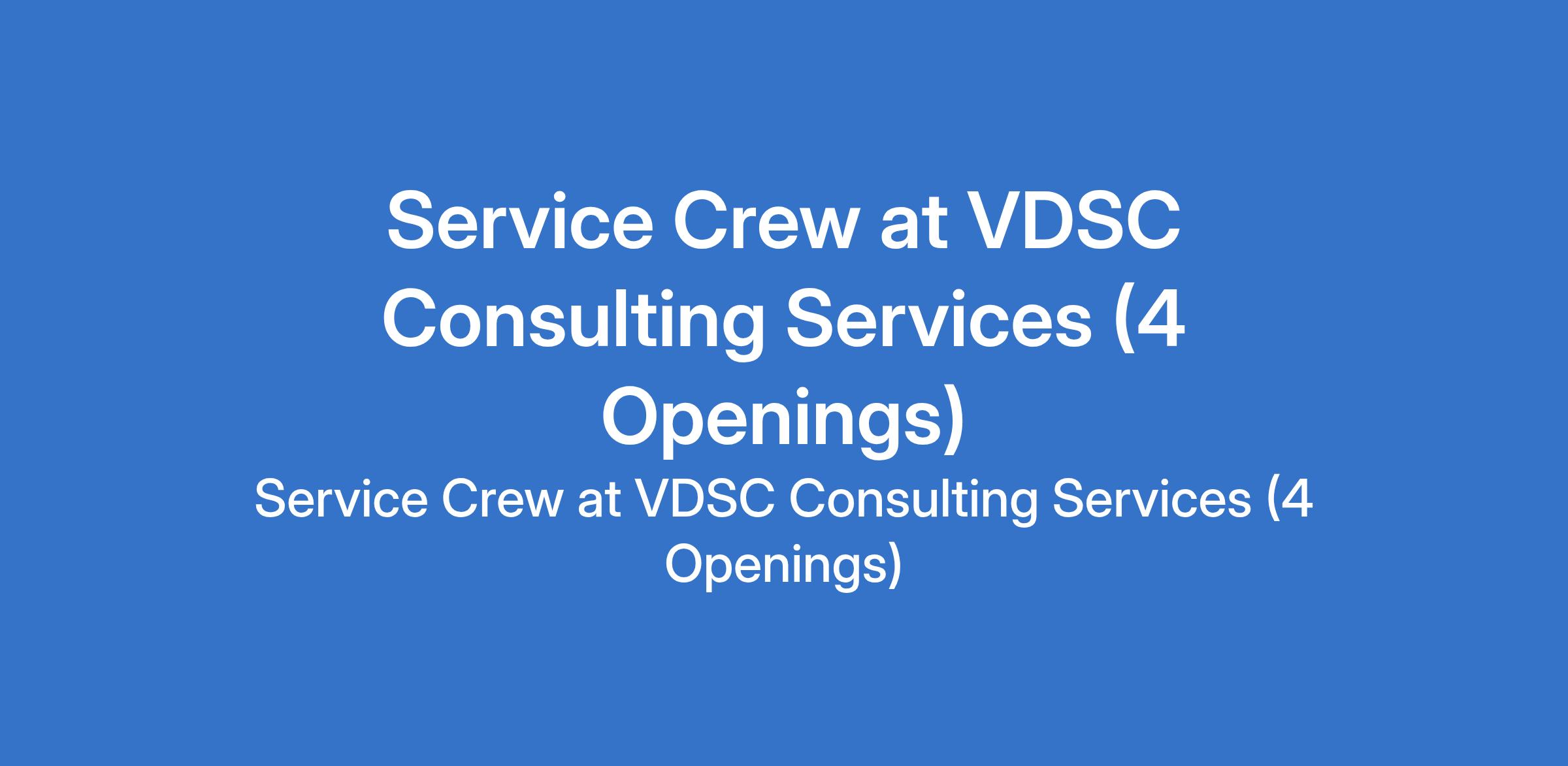 VDSC Consulting Services is recruiting to fill the position of: Service Crew. The position is located in Ikeja, Victoria Island, Lekki, Ikoyi - Lagos State. Salary: N90,000 monthly. Interested candidates should possess a First School Leaving Certificate, B.Sc / HND with 0-1 year experience.