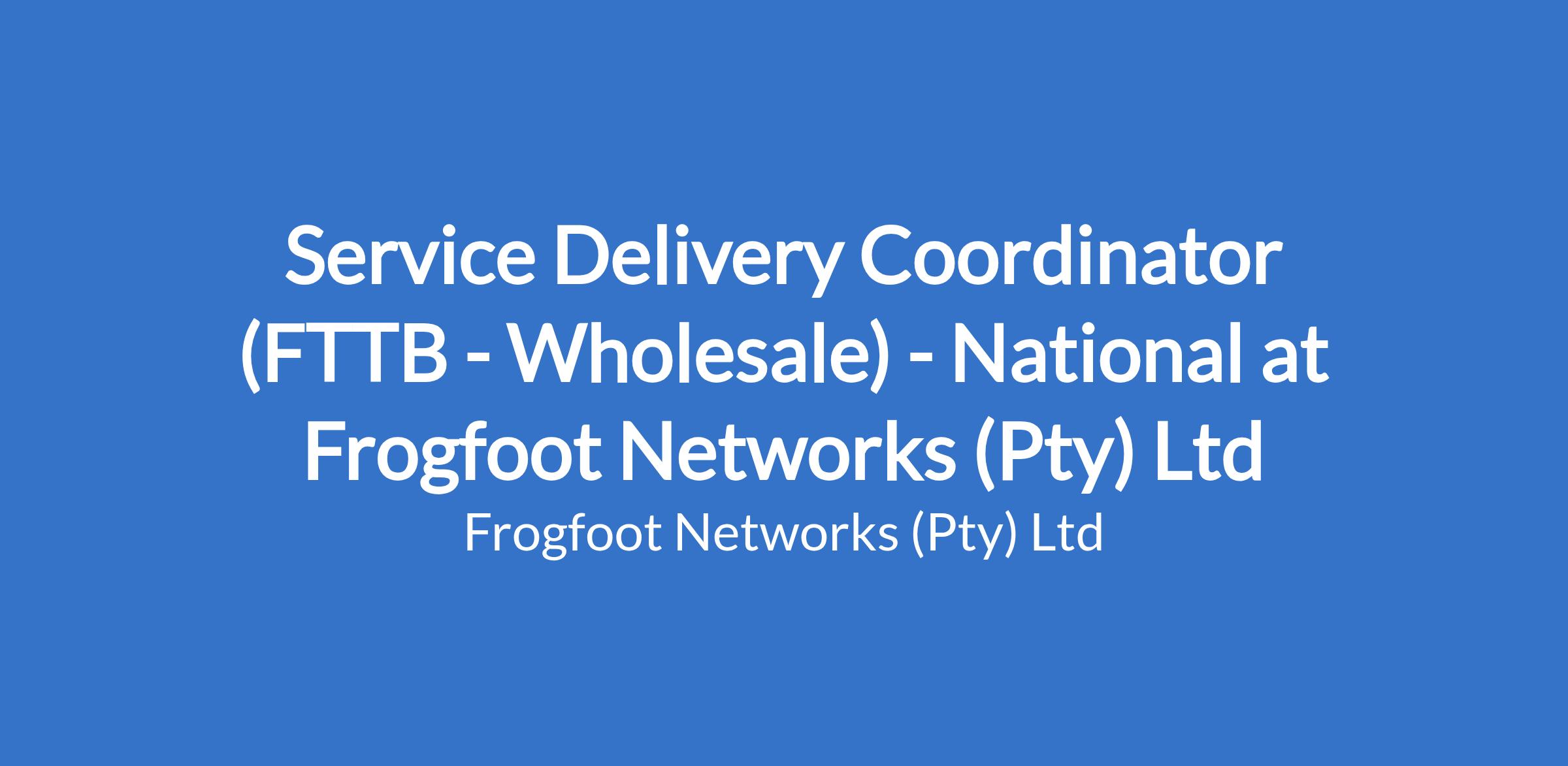 Frogfoot is looking for a Service Delivery Coordinator (FTTB - Wholesale). Hybrid working model.