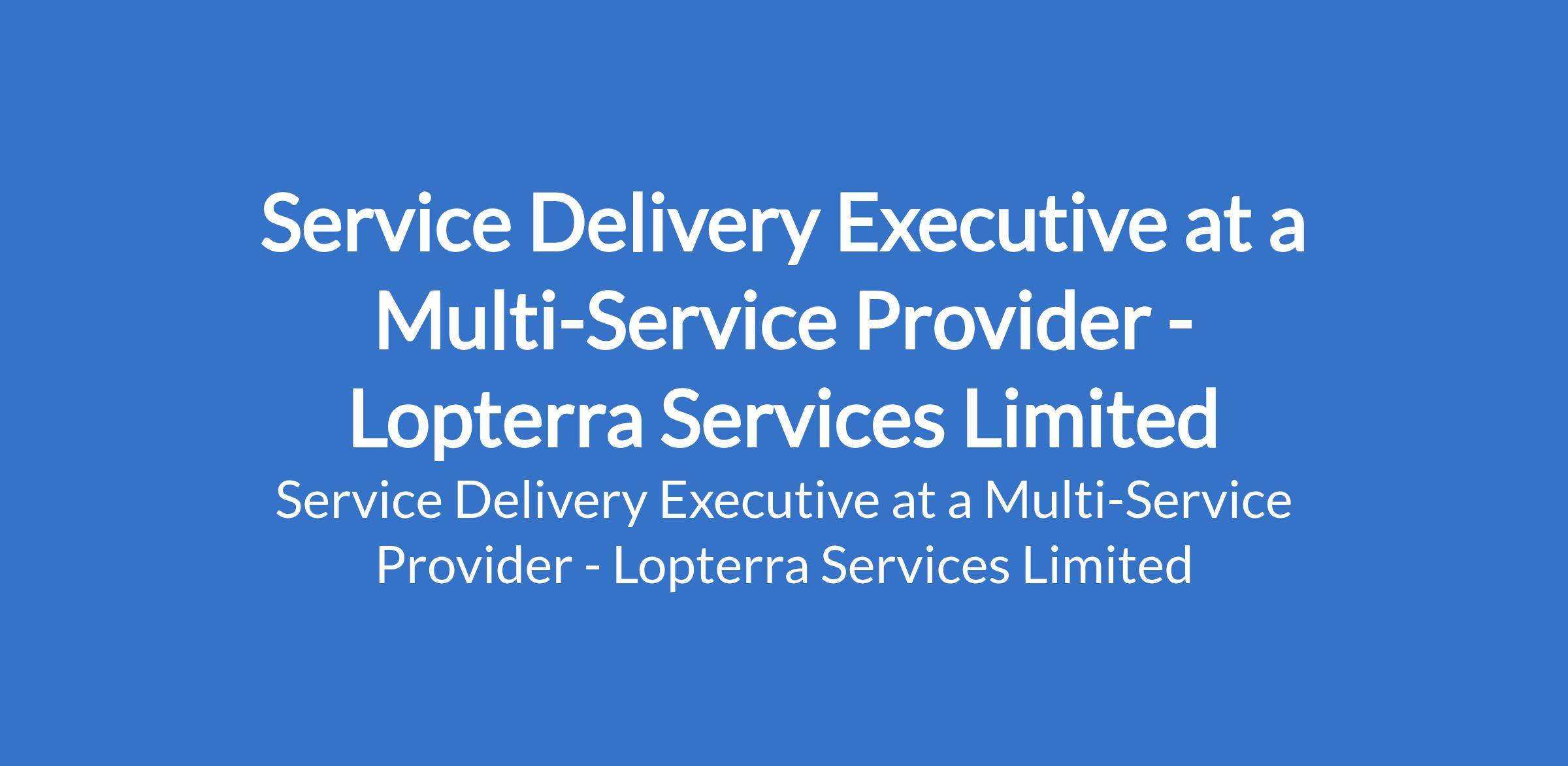 Lopterra Services Limited - Our client, a multi-service provider is recruiting to fill the position of: Service Delivery Executive. The position is located in Berger, Lagos State. Interested candidates should possess a Bachelors Degree in Business Administration, Operations Management, or related fields with 35 years experience in service delivery, operations, or client management roles.