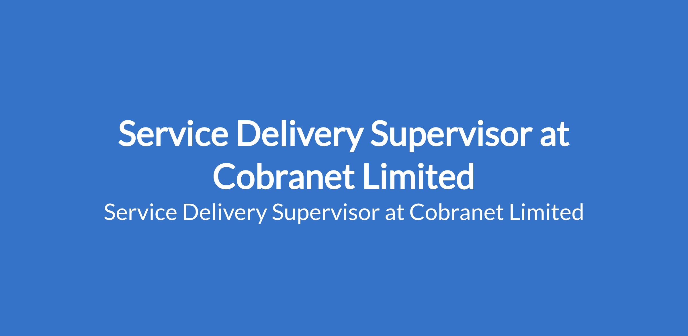 Service Delivery Supervisor at Cobranet Limited