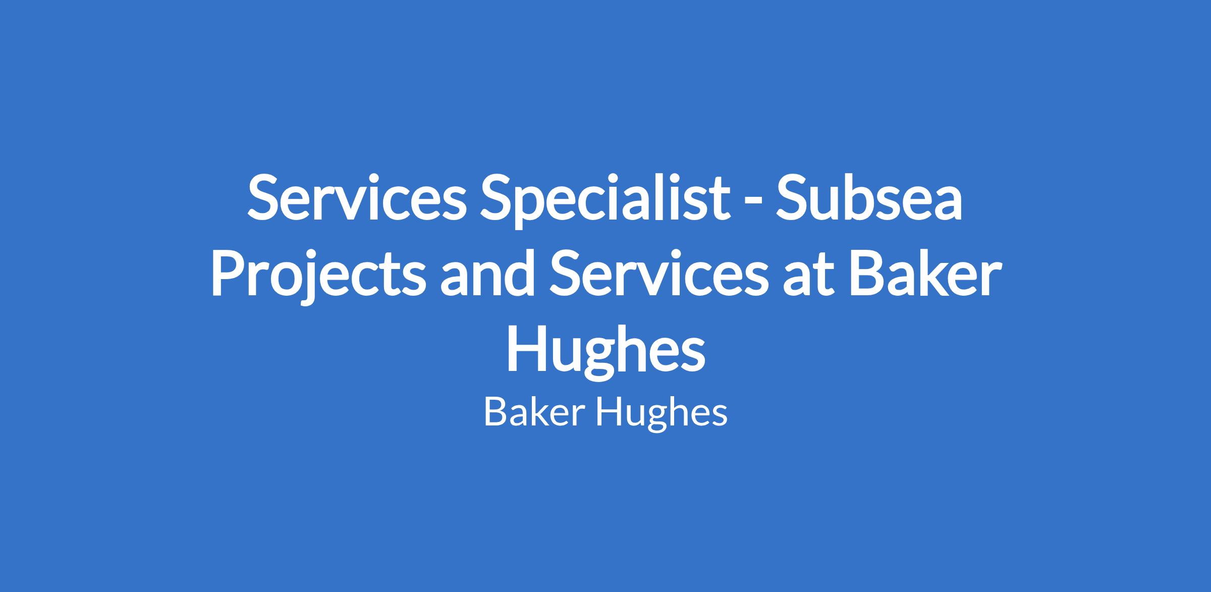 Services Specialist - Subsea Projects and Services at Baker Hughes