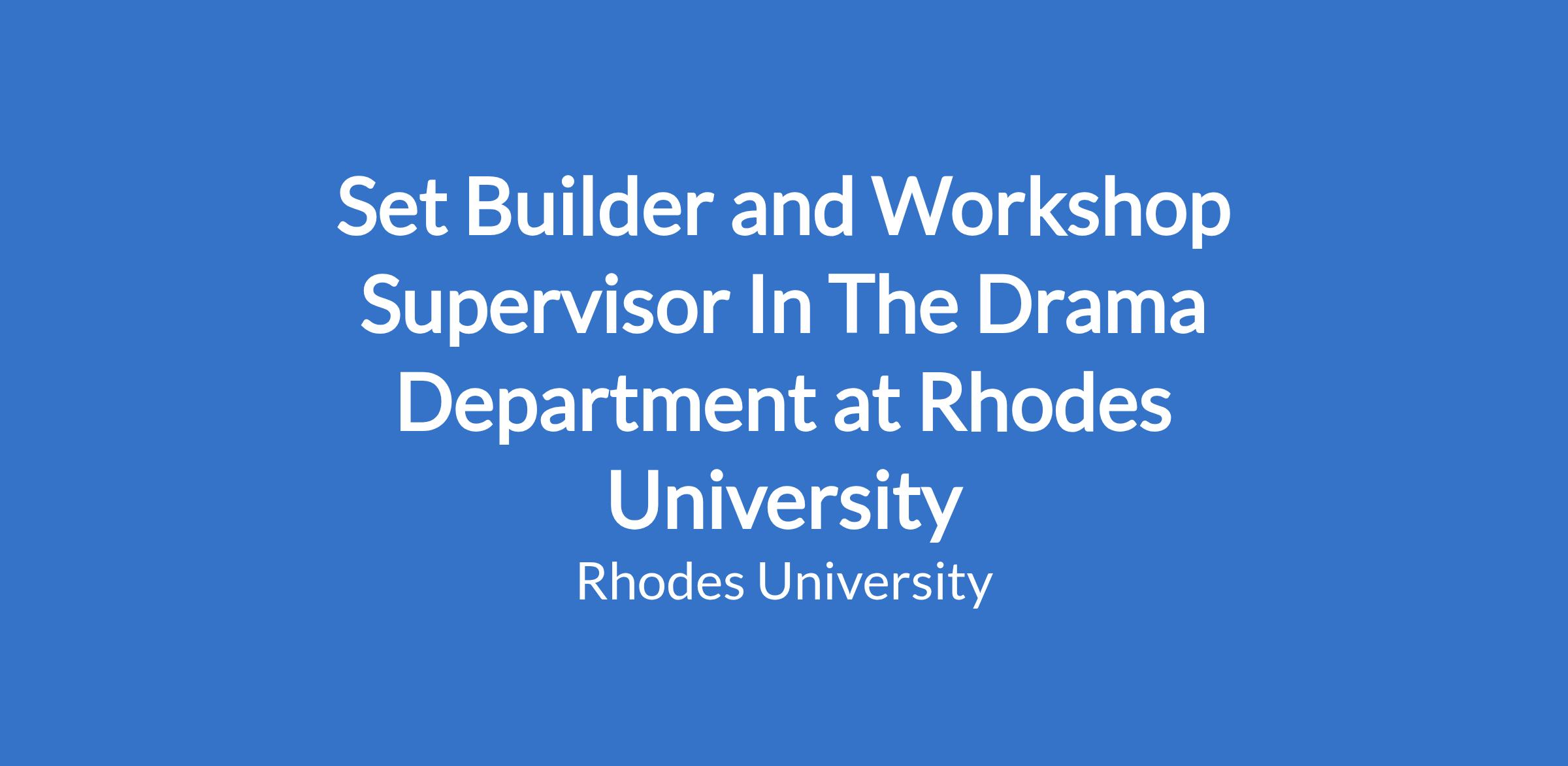 Set Builder and Workshop Supervisor In The Drama Department at Rhodes University