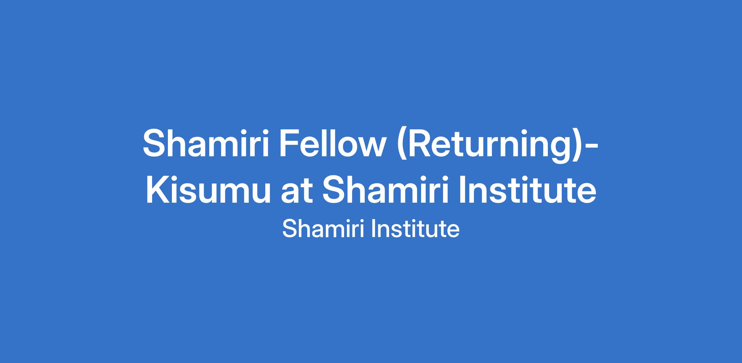 Shamiri Fellow (Returning)- Kisumu at Shamiri Institute