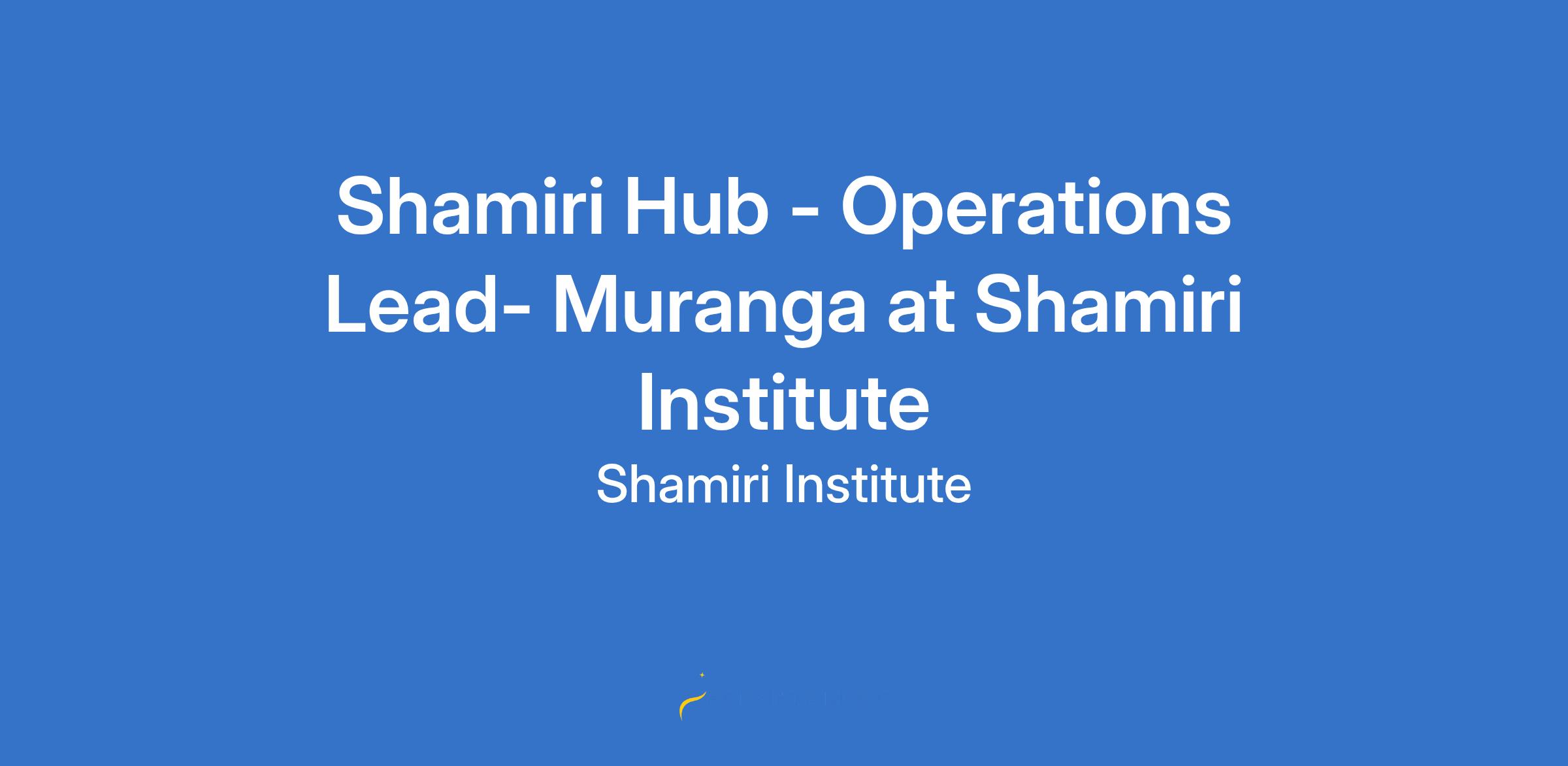 Shamiri Hub - Operations Lead- Muranga at Shamiri Institute