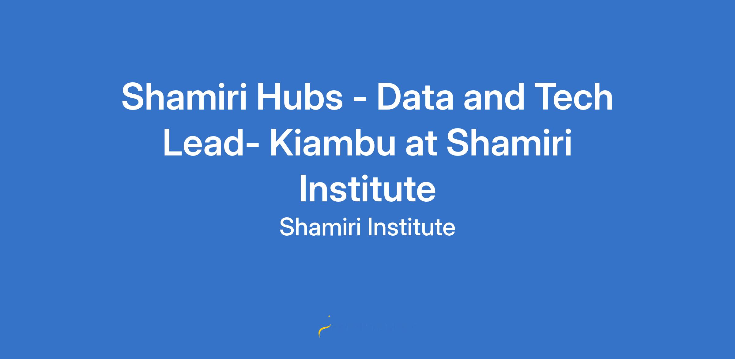 Shamiri Hubs - Data and Tech Lead- Kiambu at Shamiri Institute