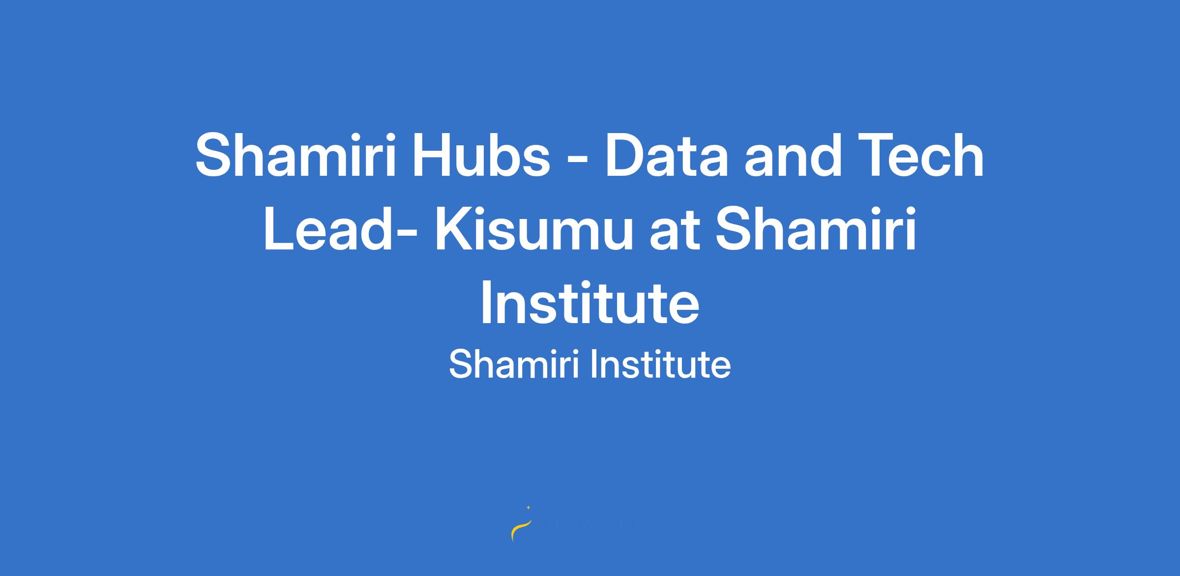 The Shamiri Hub - Data and Tech Lead's specific duties are detailed below: