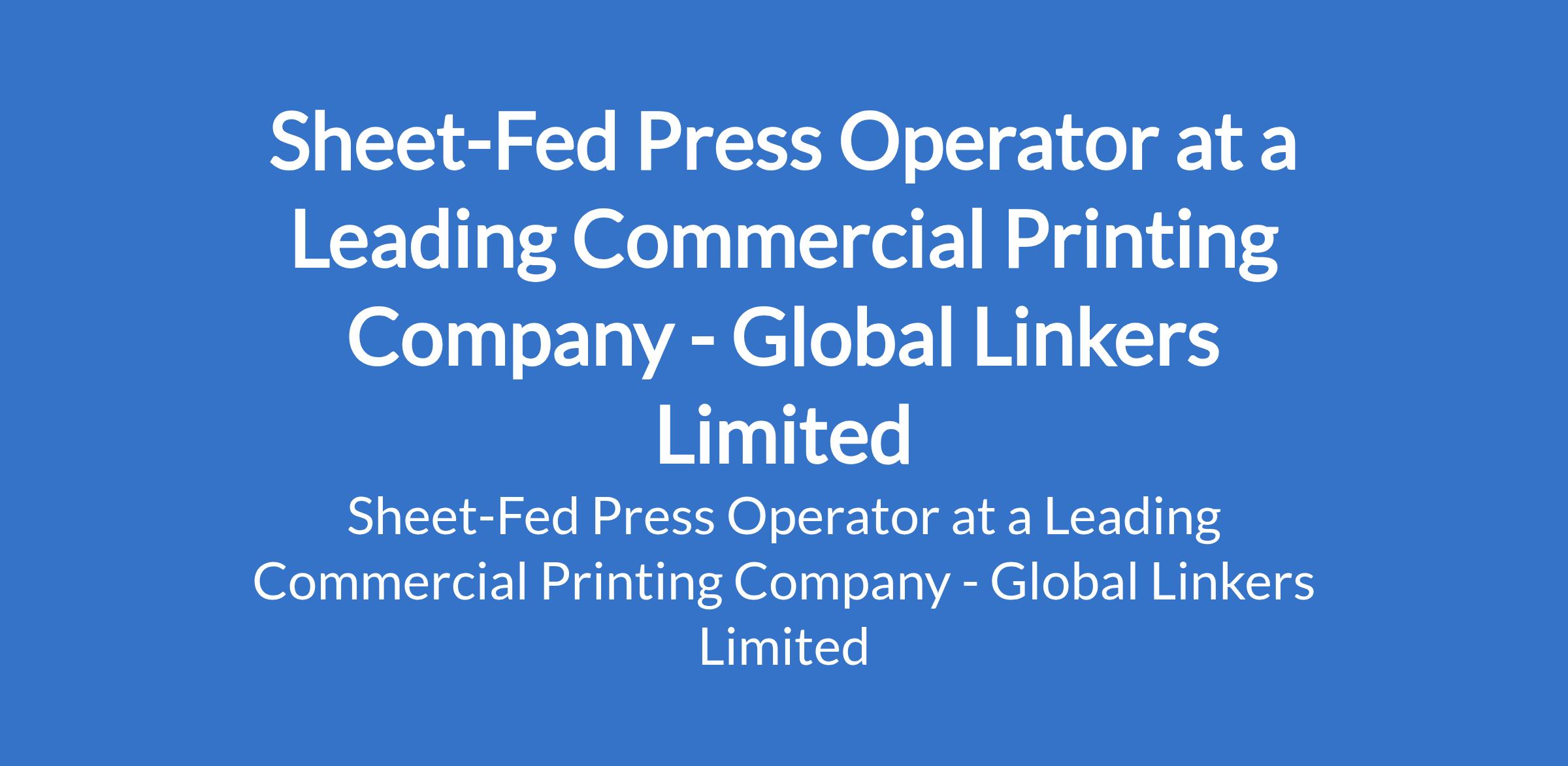 Global Linkers Limited is recruiting to fill the position of: Sheet-Fed Press Operator. The position is located in Ikeja, Lagos State. Interested candidate should possess a minimum of Secondary School Certificate or technical certification in Printing Technology with Proven experience operating sheet-fed printing presses (e.g., Heidelberg Speedmaster CD 102, SM 74, SM 102).