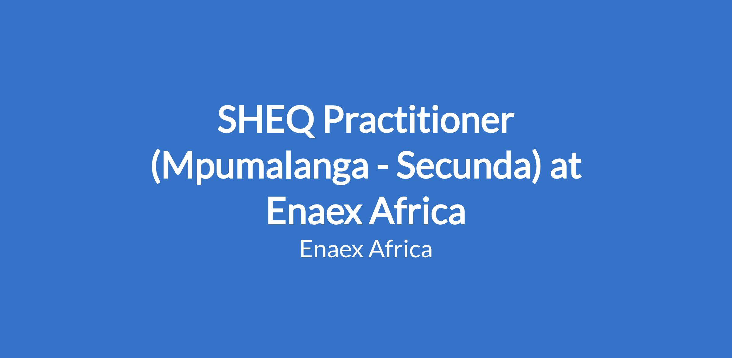 SHEQ Practitioner (Mpumalanga - Secunda) at Enaex Africa