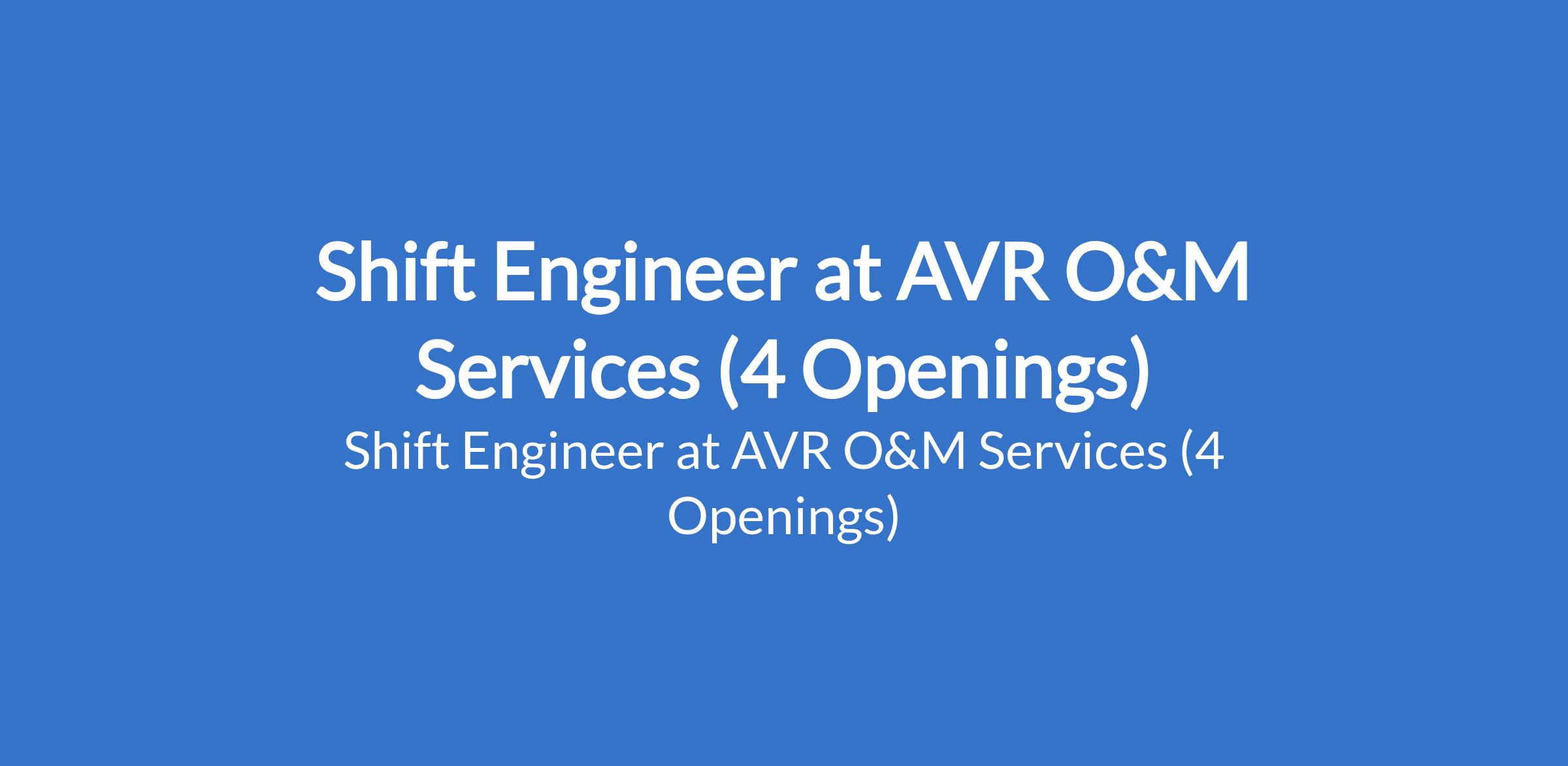 Shift Engineer at AVR O&M Services (4 Openings)
