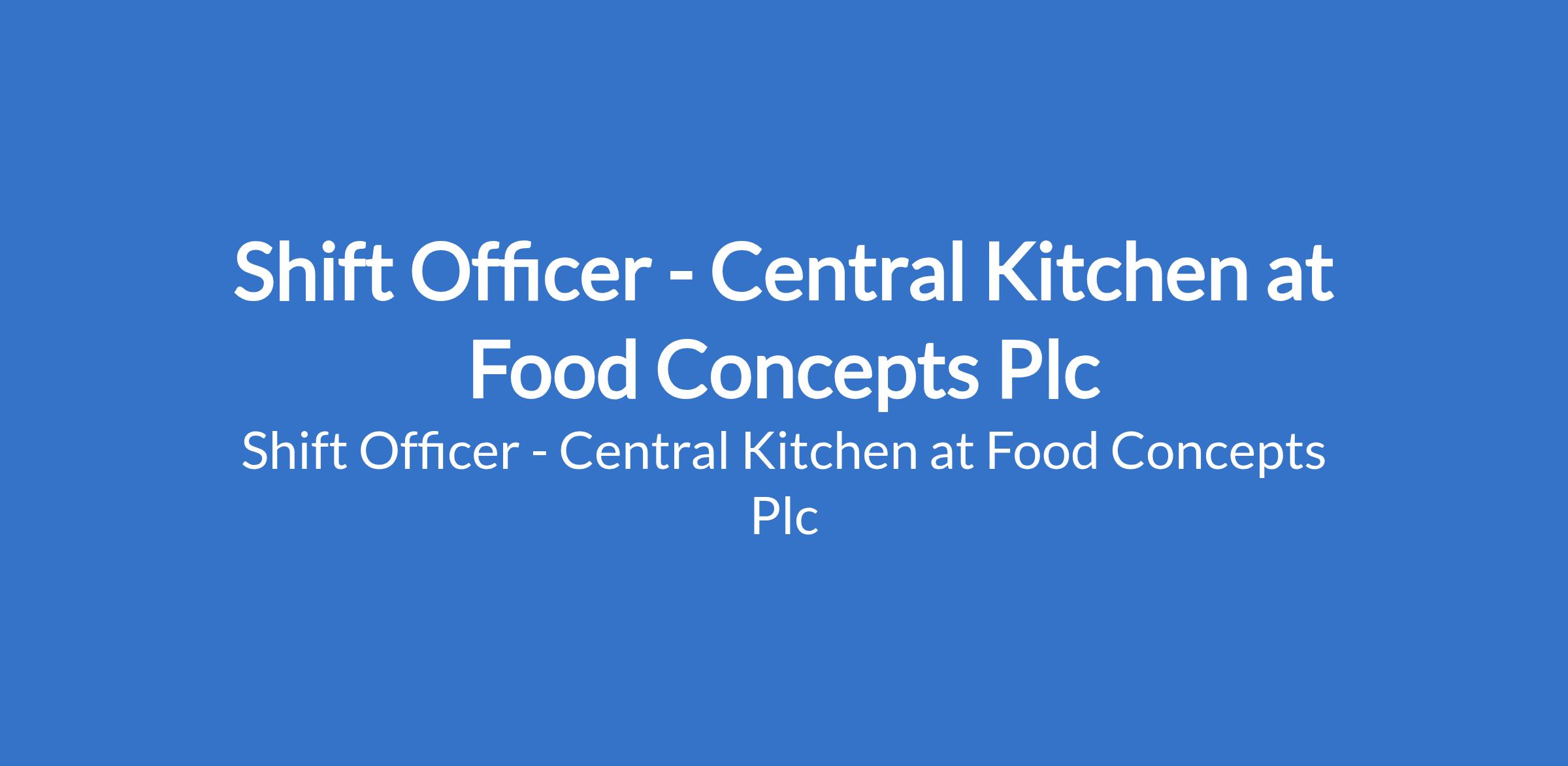 Food Concepts Plc is recruiting to fill the position of: Shift Officer - Central Kitchen. The position is located in Ilupeju, Lagos State. Salary: N90,000 - N100,000 / month. Interested candidates should possess a WAEC / SSCE / ND / B.Sc qualification with a minimum of 1 year experience in a catering role.