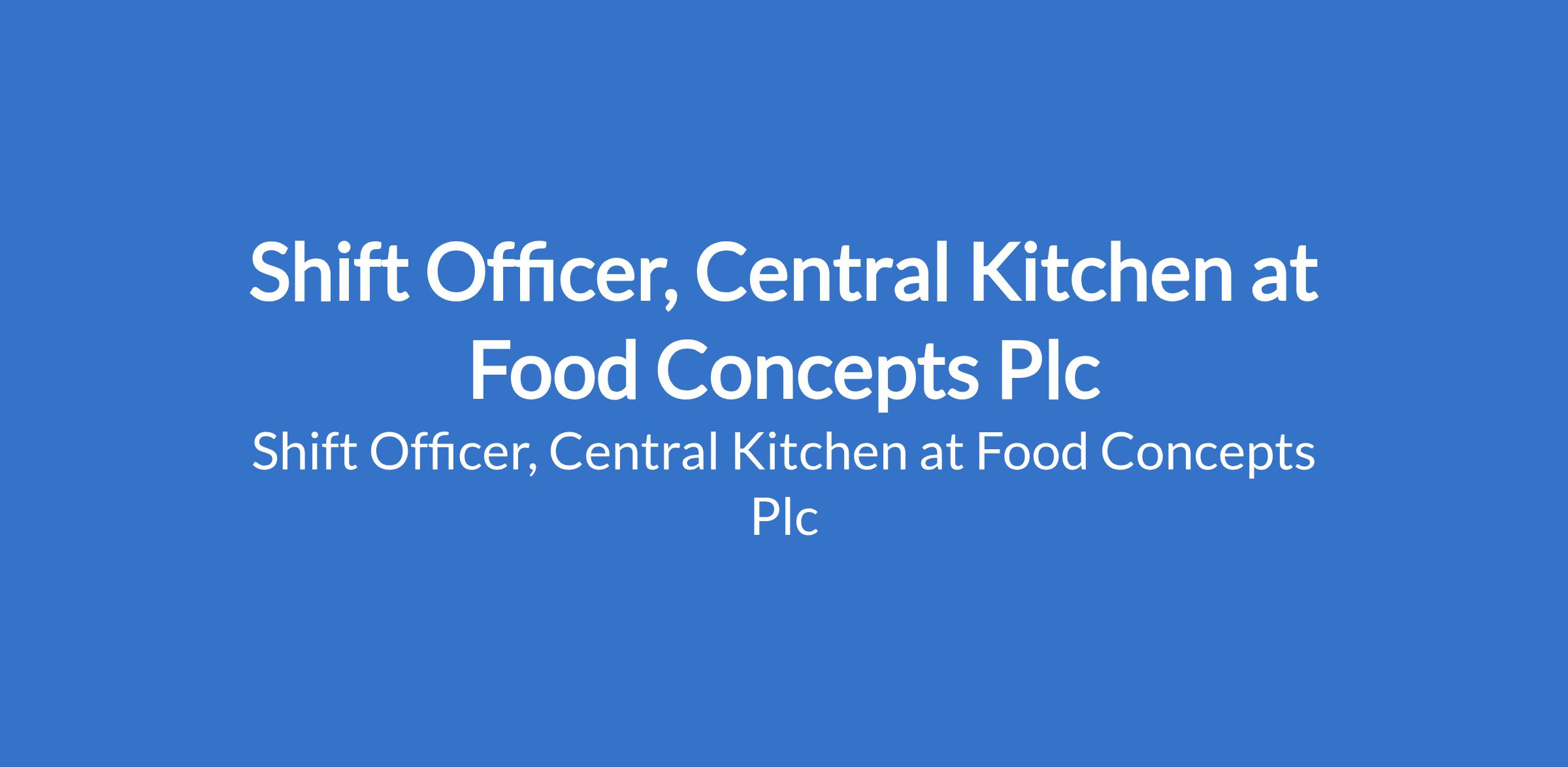 Shift Officer, Central Kitchen at Food Concepts Plc