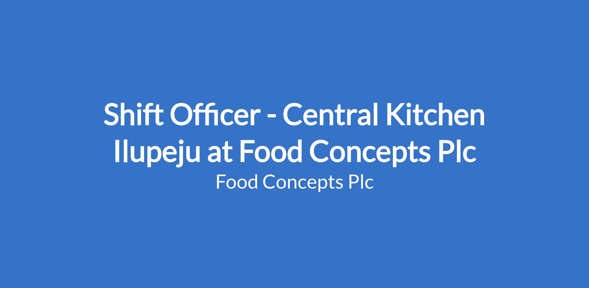 Shift Officer - Central Kitchen Ilupeju at Food Concepts Plc