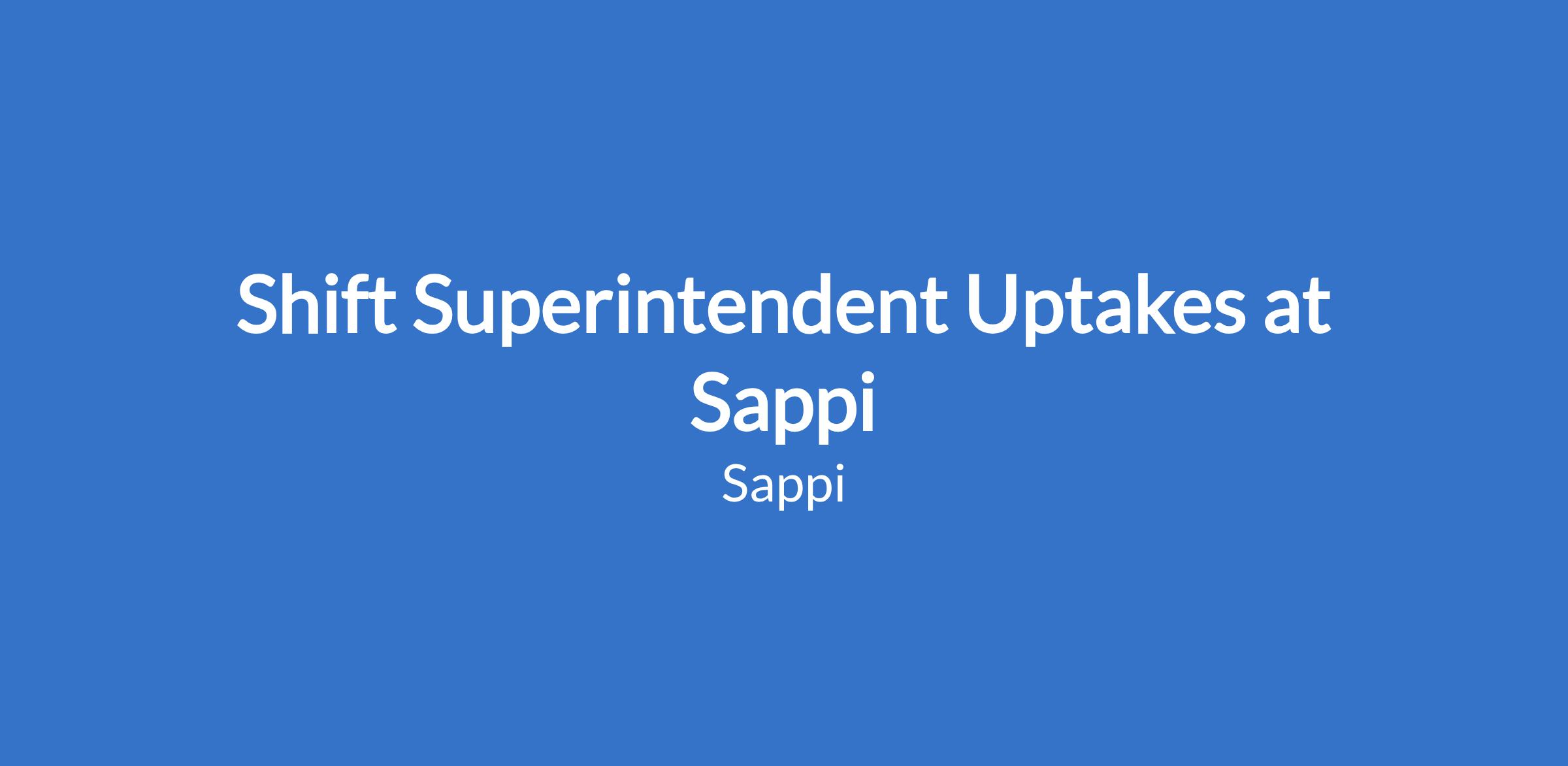 Shift Superintendent Uptakes at Sappi