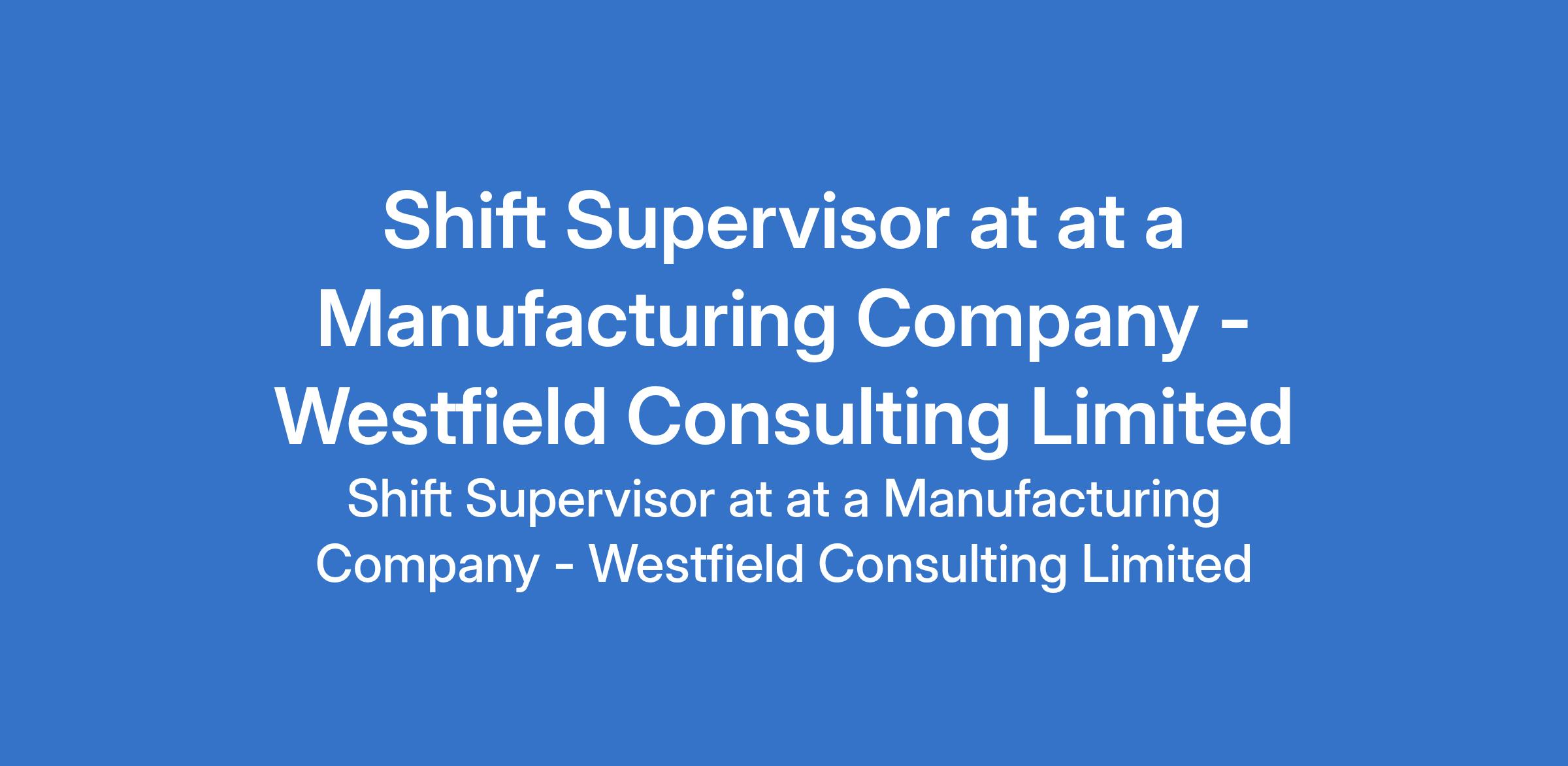 Westfield Consulting Limited - Our client in the Manufacturing space is recruiting to fill the position of: Shift Supervisor. The position is located in Mowe, Ogun State. Salary: N215,000 - N350,000 monthly. Interested candidates should possess a BSc / B.Engr. / HND qualificatios with a minimum of 7 years experience in the Manufacturing Industry.