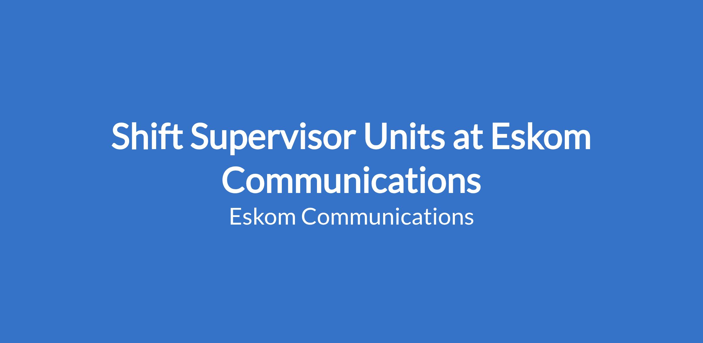 Area of specialization: Supervision of the operating activities and people on Generation units and associated auxiliary systems and/ or the outside plant through adequate planning, organizing, coordinating, monitoring and control activities: Department: Operating; Position/Task Grade: T11 : Business Unit: Duvha Power Station: Location: Mpumalanga: Number of Positions: x2
