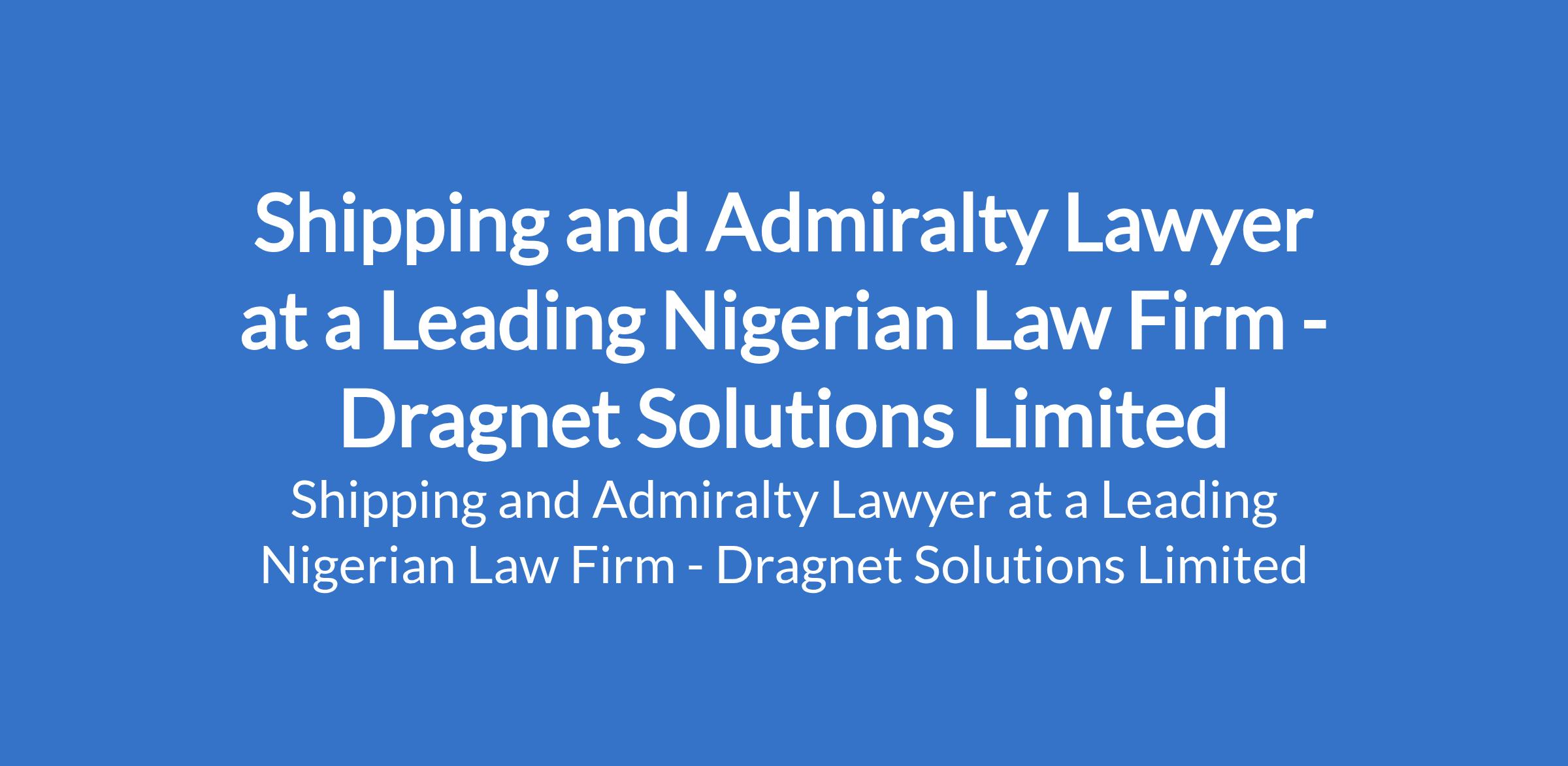 Dragnet Solutions Limited - Our client, a leading Nigerian law firm is recruiting to fill the position of: Shipping and Admiralty Lawyer. The position is located in Lagos State. The successful candidate will have in-depth knowledge of maritime law and demonstrated experience advising clients in shipping, admiralty claims, marine insurance, and regulatory compliance. Interested candidates should possess an LL.M in Maritime Law or relevant certification in shipping law with at least 5 years of post-call experience.