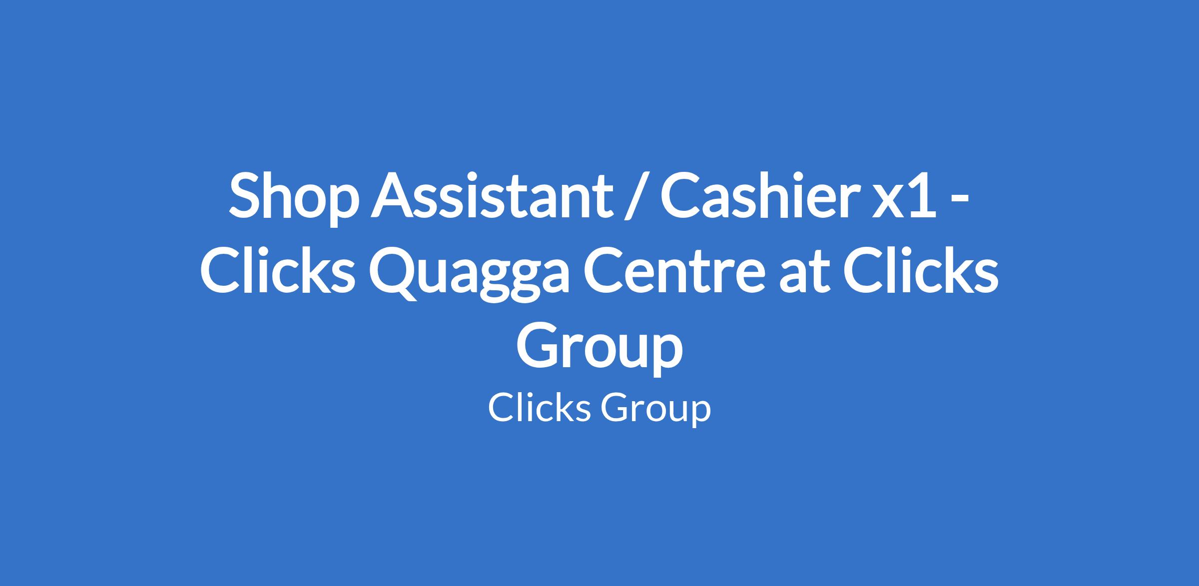 Shop Assistant / Cashier x1 - Clicks Quagga Centre at Clicks Group