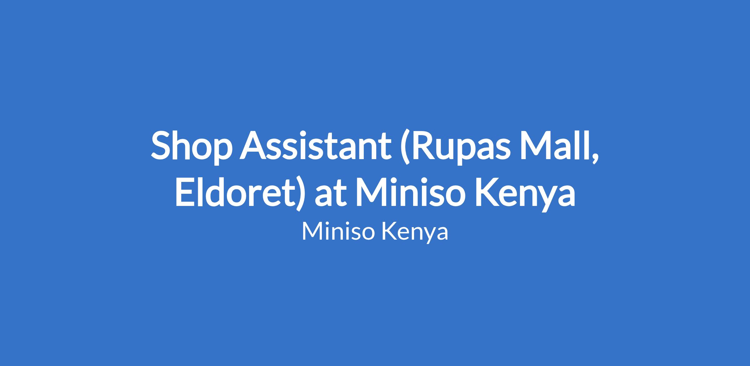 Shop Assistant (Rupas Mall, Eldoret) at Miniso Kenya