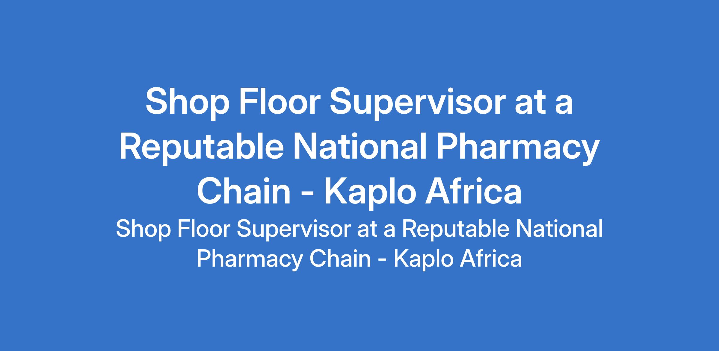 Kaplo Africa - Our client, a Reputable National Pharmacy Chain is recruiting to fill the position of: Shop Floor Supervisor. The position is located in Lagos State. Interested candidates should possess a relevant qualification with proven experience supervising a retail or pharmacy shop floor.