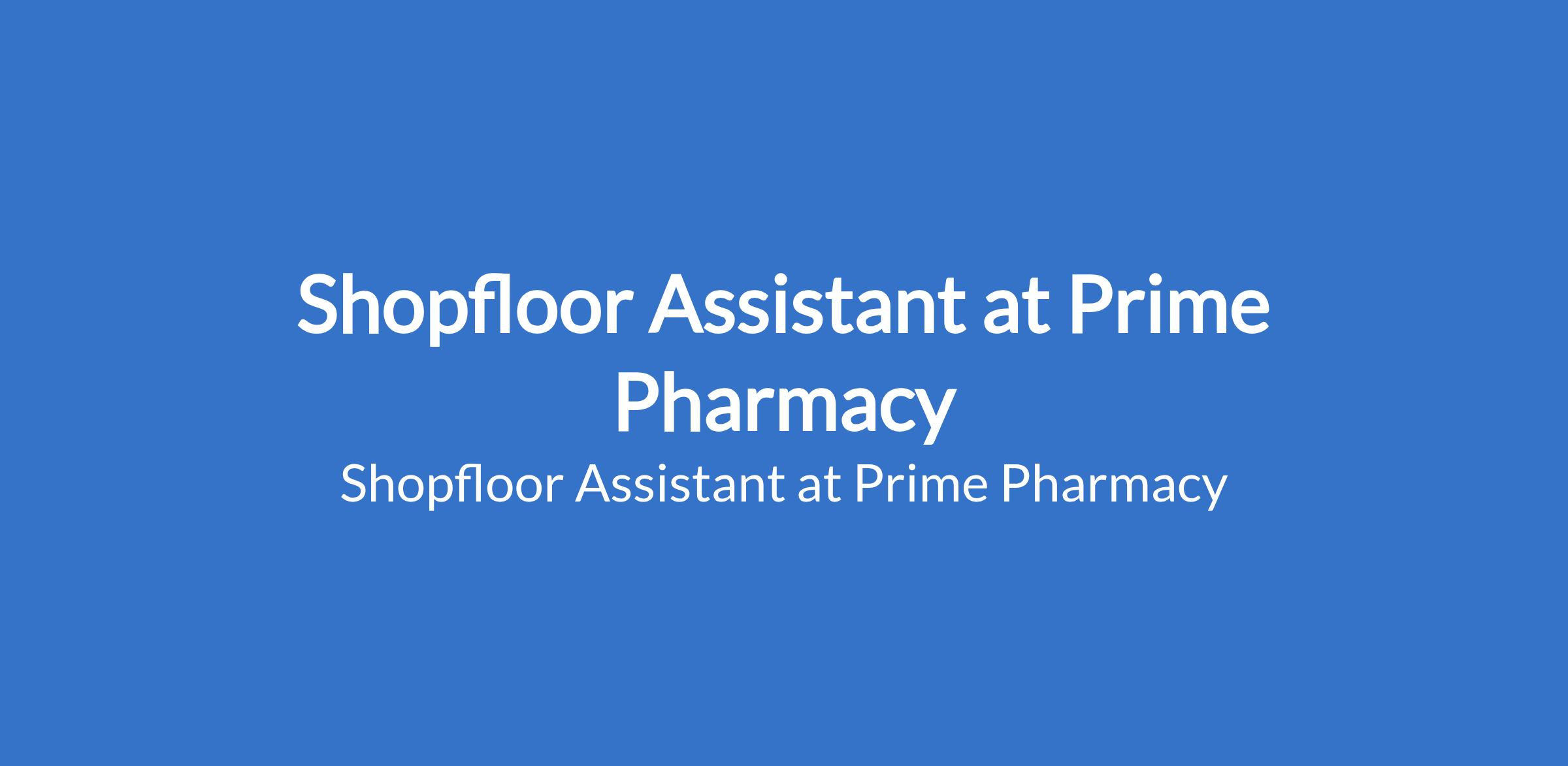 Shopfloor Assistant at Prime Pharmacy