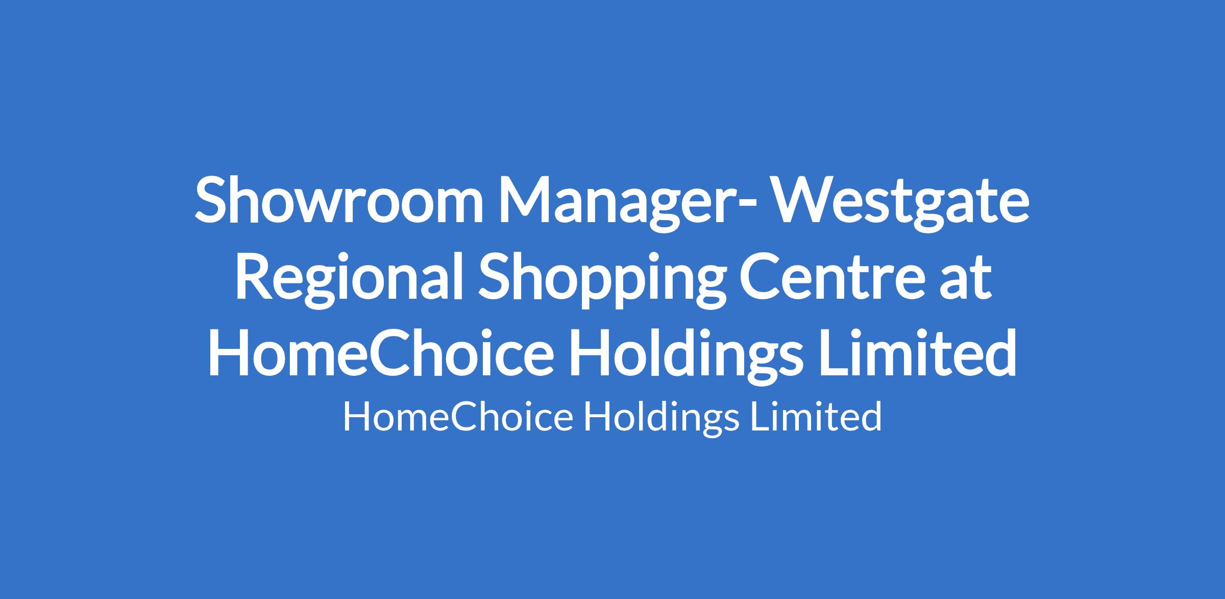 The ideal candidate for this role will be responsible for the overall management and day to day operations of the homechoice Showroom Retail Space.