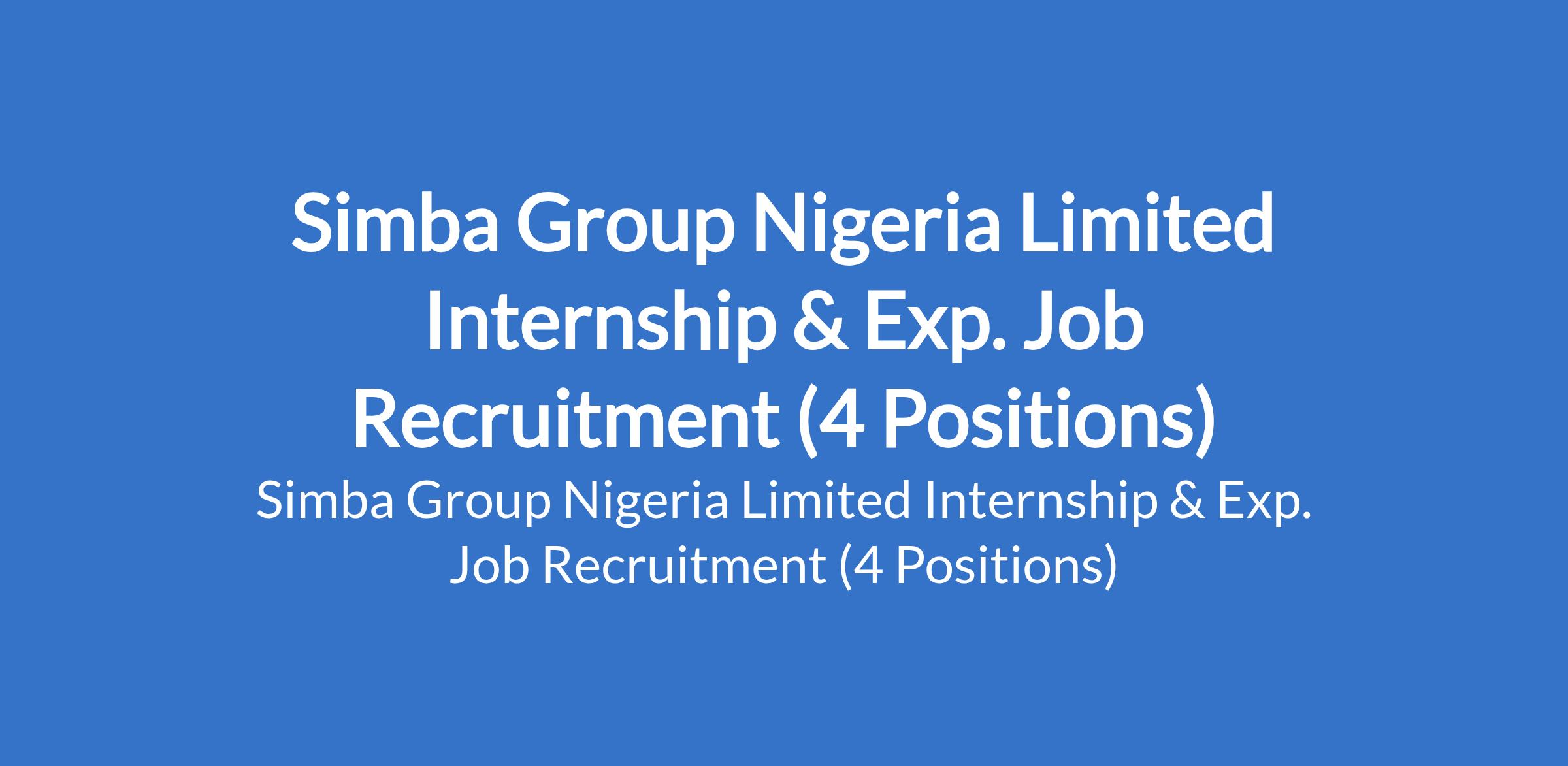 Simba Group Nigeria Limited is recruiting suitably qualified candidates to fill the following internship and experienced positions in Abuja (FCT), Enugu & Lagos States: Customer Support Intern (SIWES/IT 3 to 4 Months), Regional Marketing Executive (Automobile), Solar Design Engineer, and Fabrication Manager (3 Wheeler Automobile).