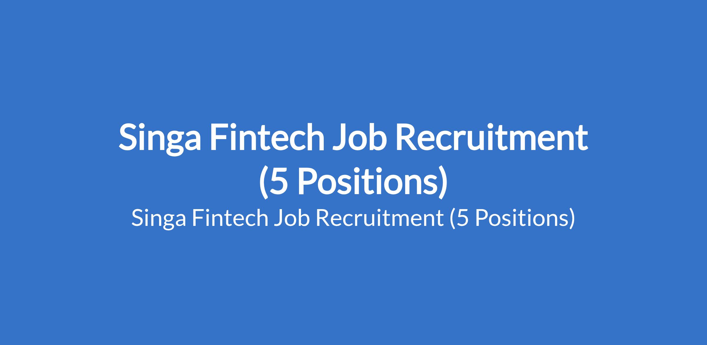 Singa Fintech is recruiting to fill the following positions in Lagos State: Human Resource & General Affairs Personnel, Loan Review Officer, Customer Service Agent, Debts Collections Agent, and Telesales Agent.