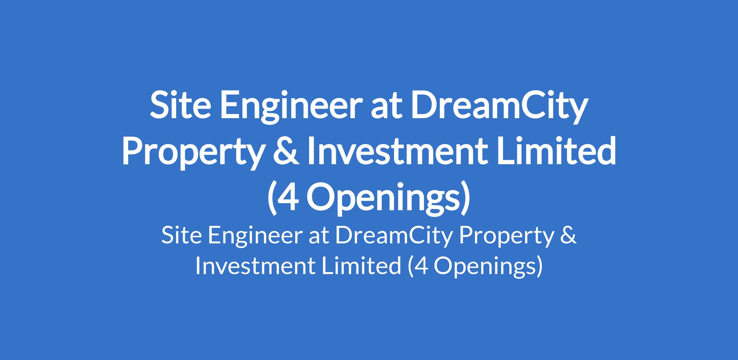 DreamCity Property & Investment Limited is recruiting to fill the position of: Site Engineer. The position is located in Jabi, Abuja and Victoria Island, Lagos State. Interested candidates should possess an HND / Bachelor's Degree in any relevant field with a minimum of 5 years of relevant experience as a Site Structural Engineer in the real estate and property construction industry.